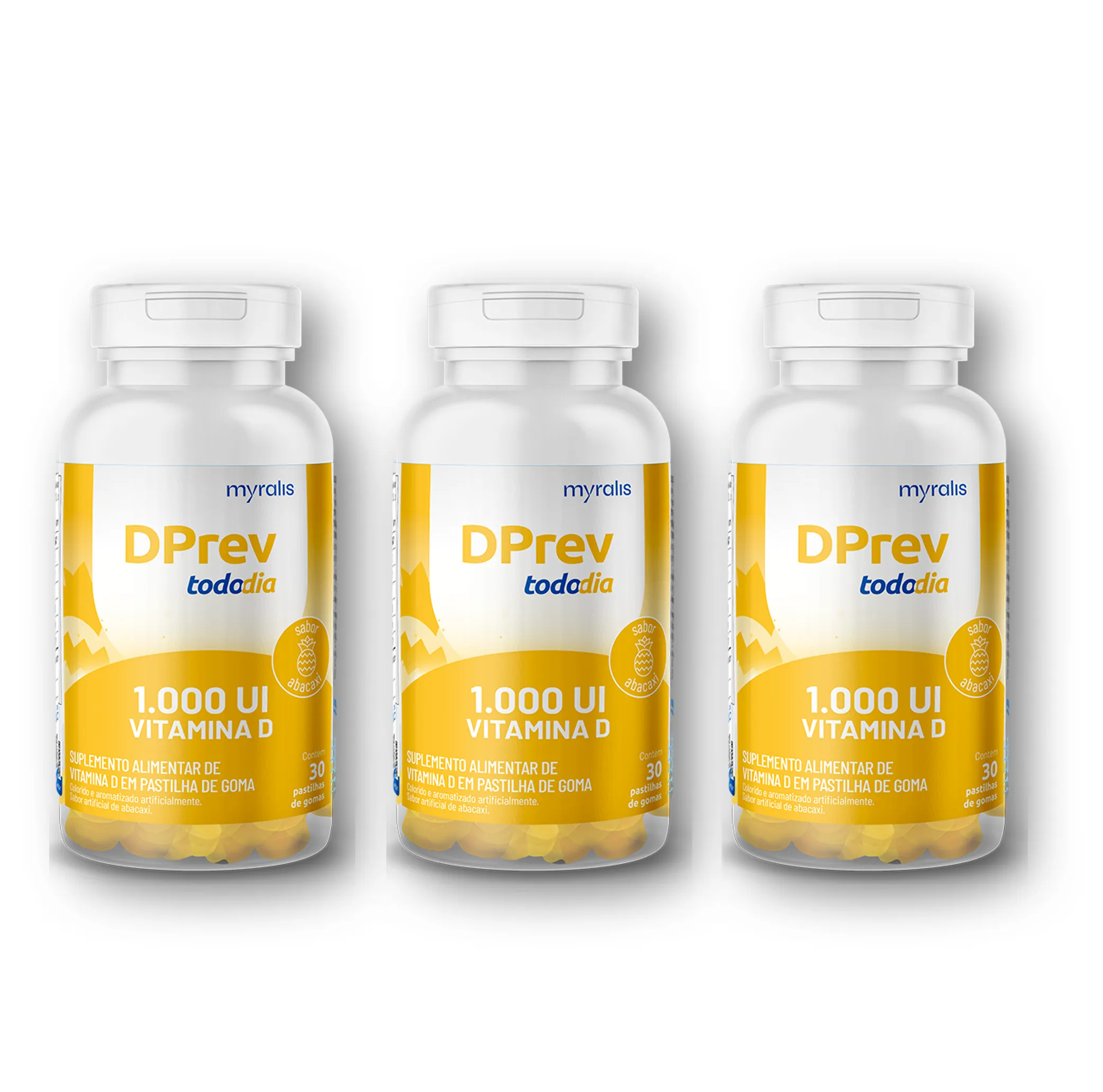 Kit 3 Unidades Vitamina D Colecalciferol DPrev Todo Dia 1000UI Abacaxi com 30 Gomas