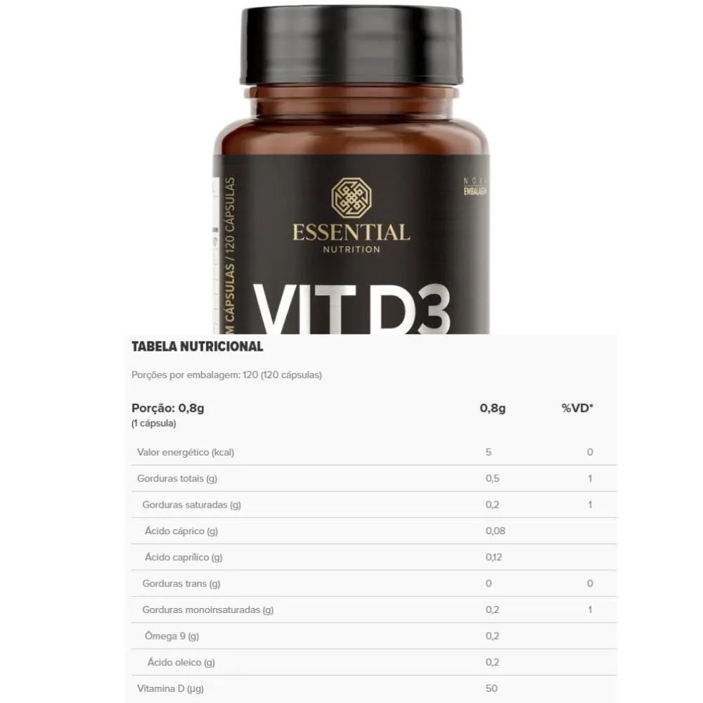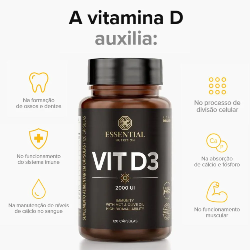 É um suplemento em dose de 2.000 UI por cápsula, na forma ativa de colecalciferol, combinado com azeite extravirgem e TCM, projetado para suportar a imunidade, auxiliar na formação e manutenção de ossos e dentes, e facilitar a absorção de cálcio e fósforo.