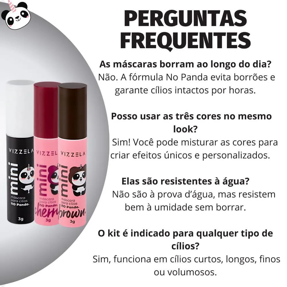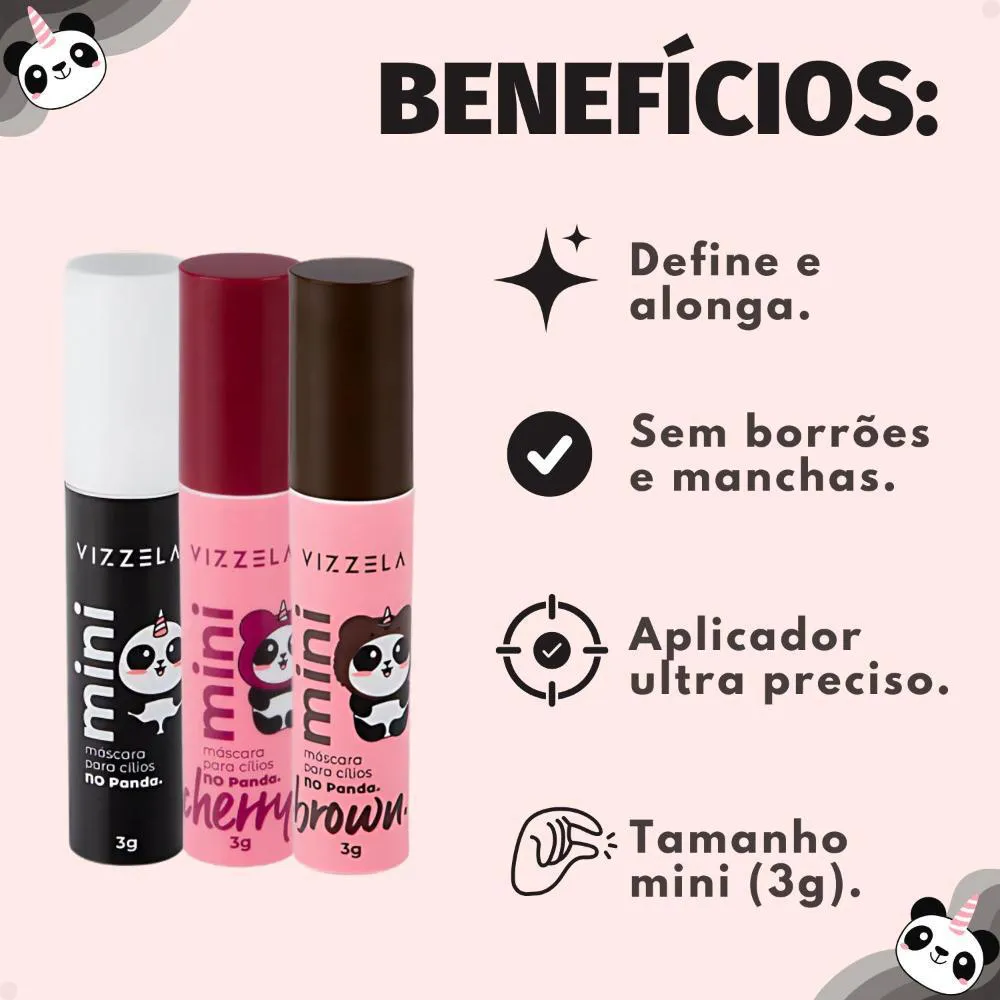 Kit Vizzela no Panda Mini Máscaras para Cílios: Preta, Marrom e Bordô