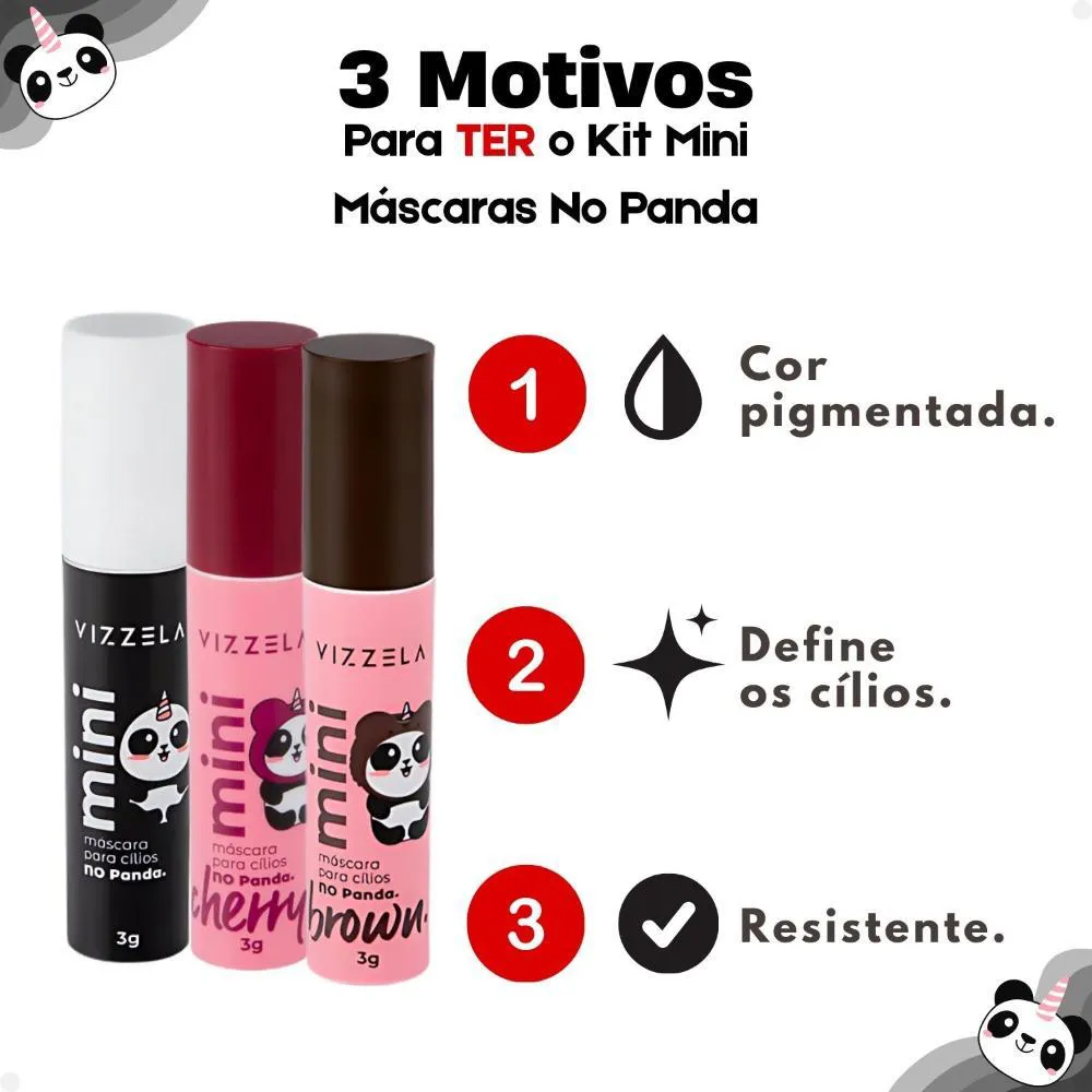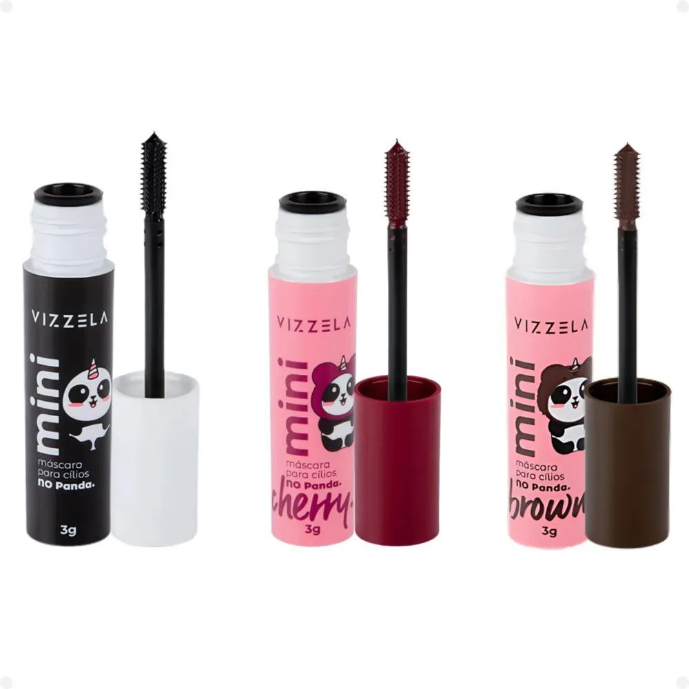 Kit Vizzela No Panda Mini Máscaras para Cílios: Preta, Marrom e Bordô