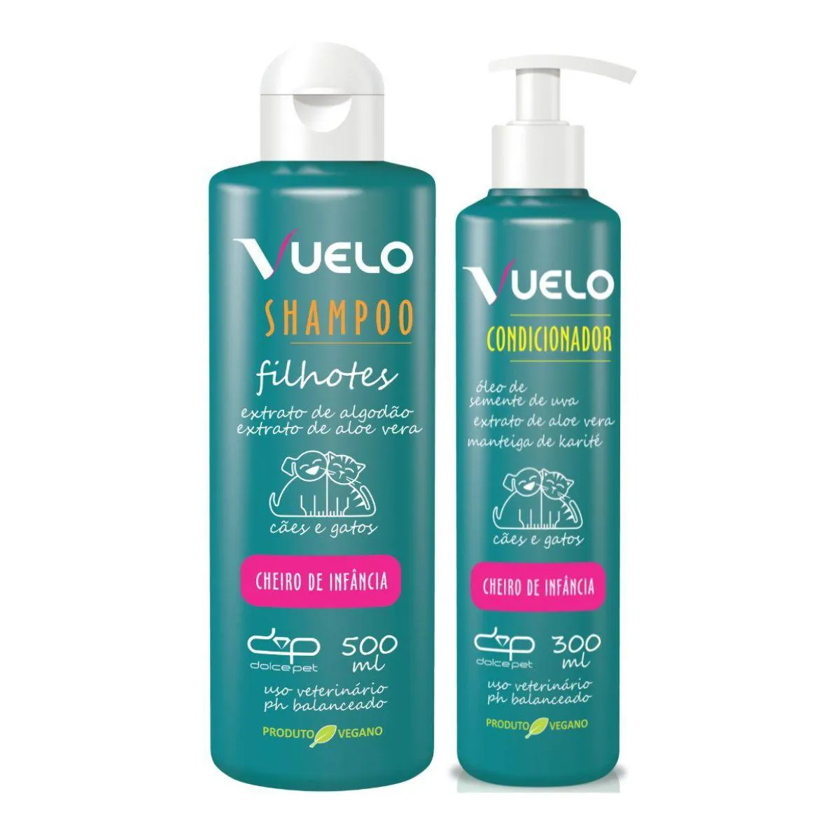 Kit Vuelo shampoo Filhotes + condicionador Cheiro de Infância para Cães e Gatos