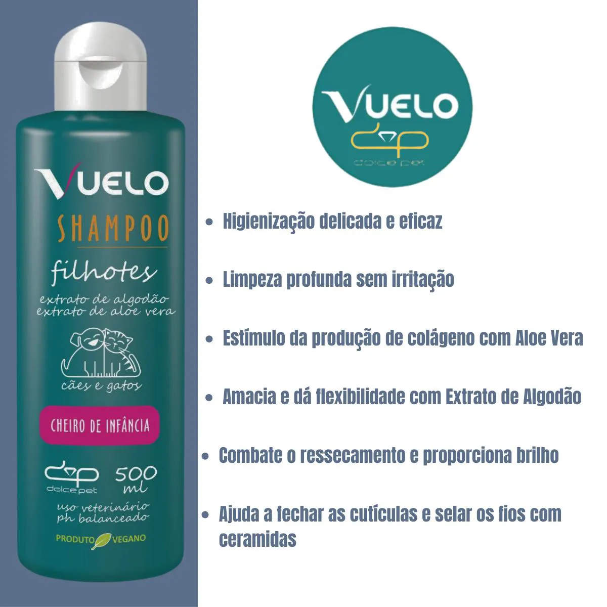 Indicado para pets de qualquer idade, o Shampoo Filhotes Vuelo é a escolha ideal para garantir que os pelos do seu pequeno sejam limpos, saudáveis e brilhantes.