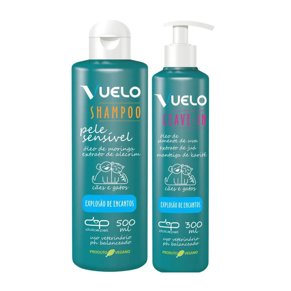 Kit Vuelo Shampoo Pele Sensível + Leave-In Explosão de Encantos para Cães e Gatos