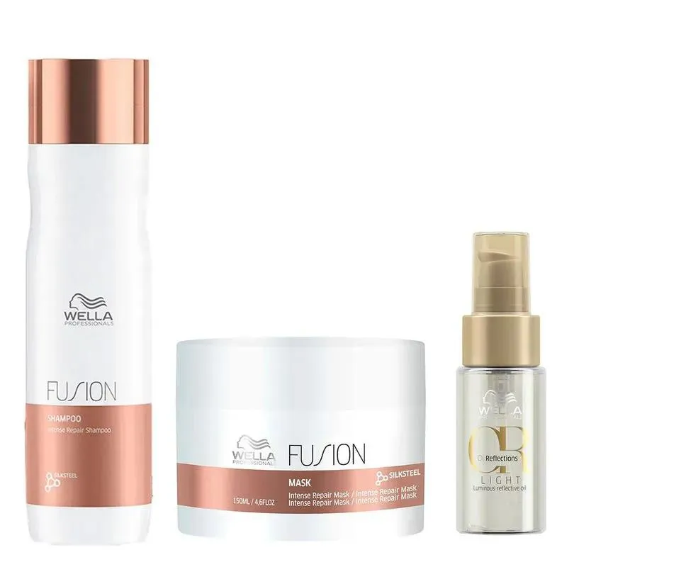 Kit Wella Fusion Sh 250ml + Masc 150ml + Oil Reflections 100ml
