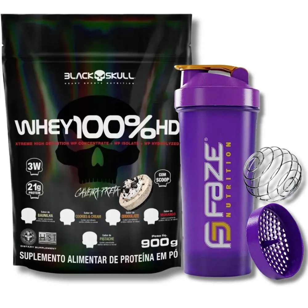Kit Whey Protein Concentrado 100% HD 900g Refil Black Skull – Cookies & Cream + Coqueteleira