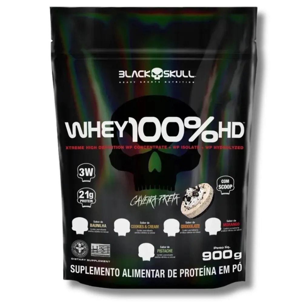 - 1x Whey Protein Concentrado 100% HD Black Skull (refil) – 900g (Cookies & Cream)