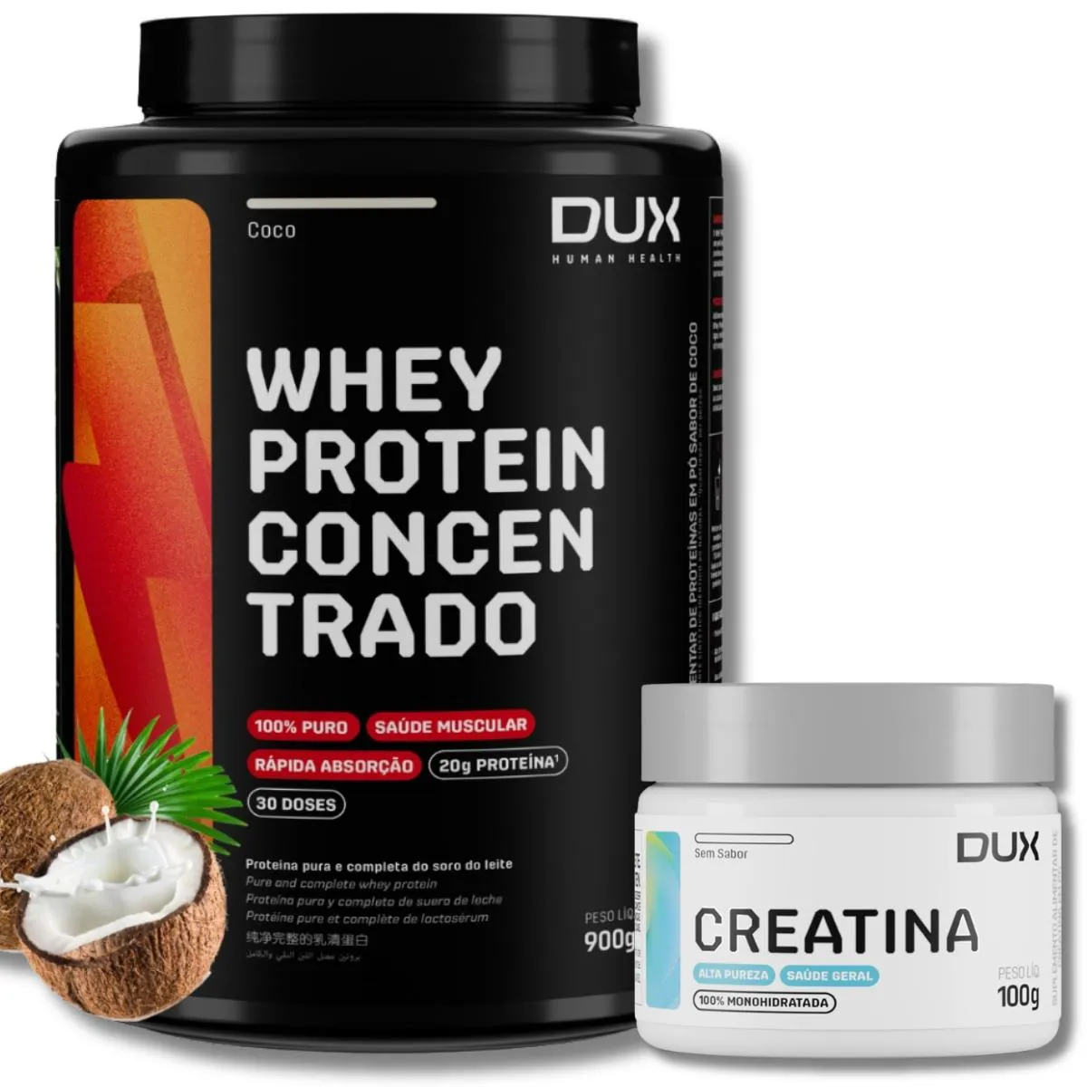 Kit Whey Protein Concentrado 900g Coco (sabor whey) + Creatina 100g Sem Sabor — Dux Human Health