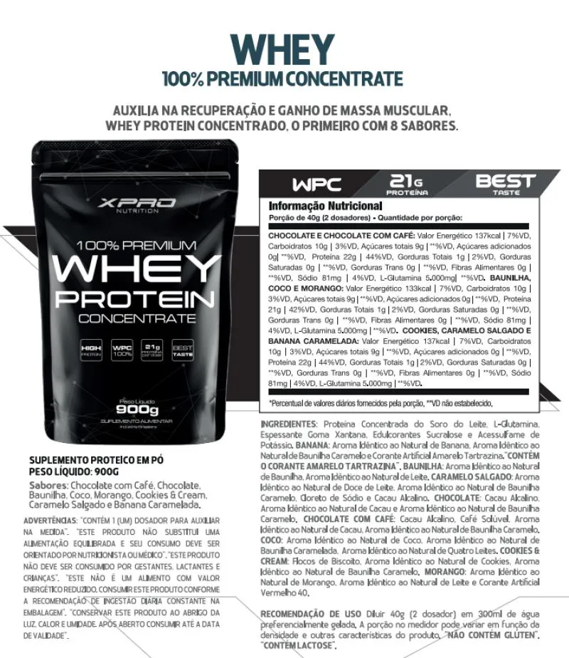 Kit Whey Protein Concentrado 900G + Creatina Pura 300G + Coqueteleira 700Ml - Xpro Nutrition