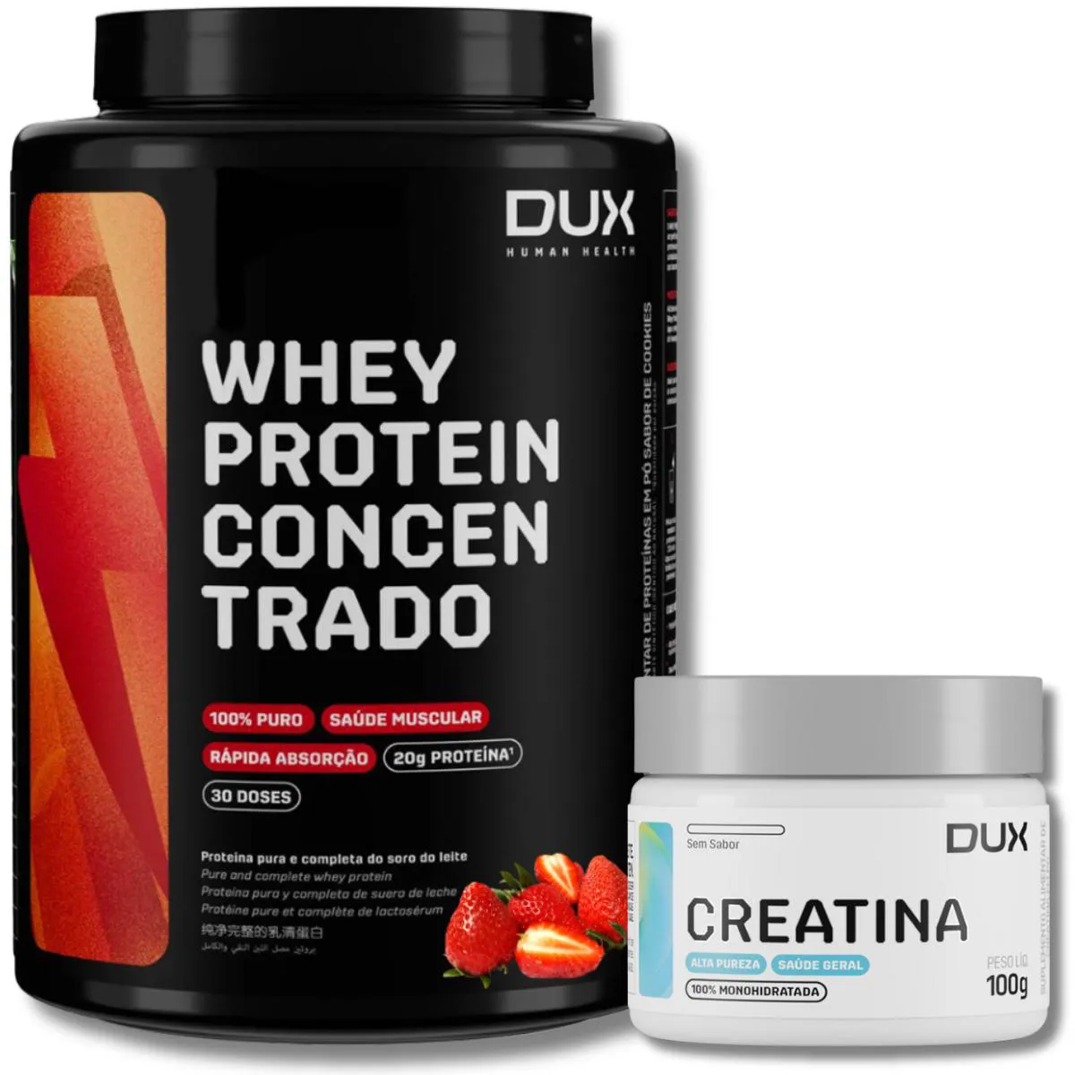 Kit Whey Protein Concentrado 900g Morango (sabor whey) + Creatina 100g Sem Sabor — Dux Human Health