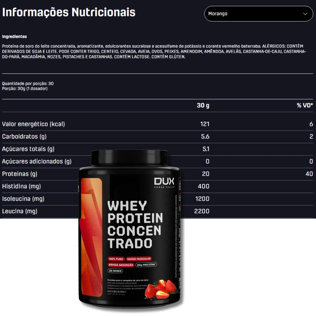 - Whey Concentrado de alto rendimento e custo-benefício com sabor morango