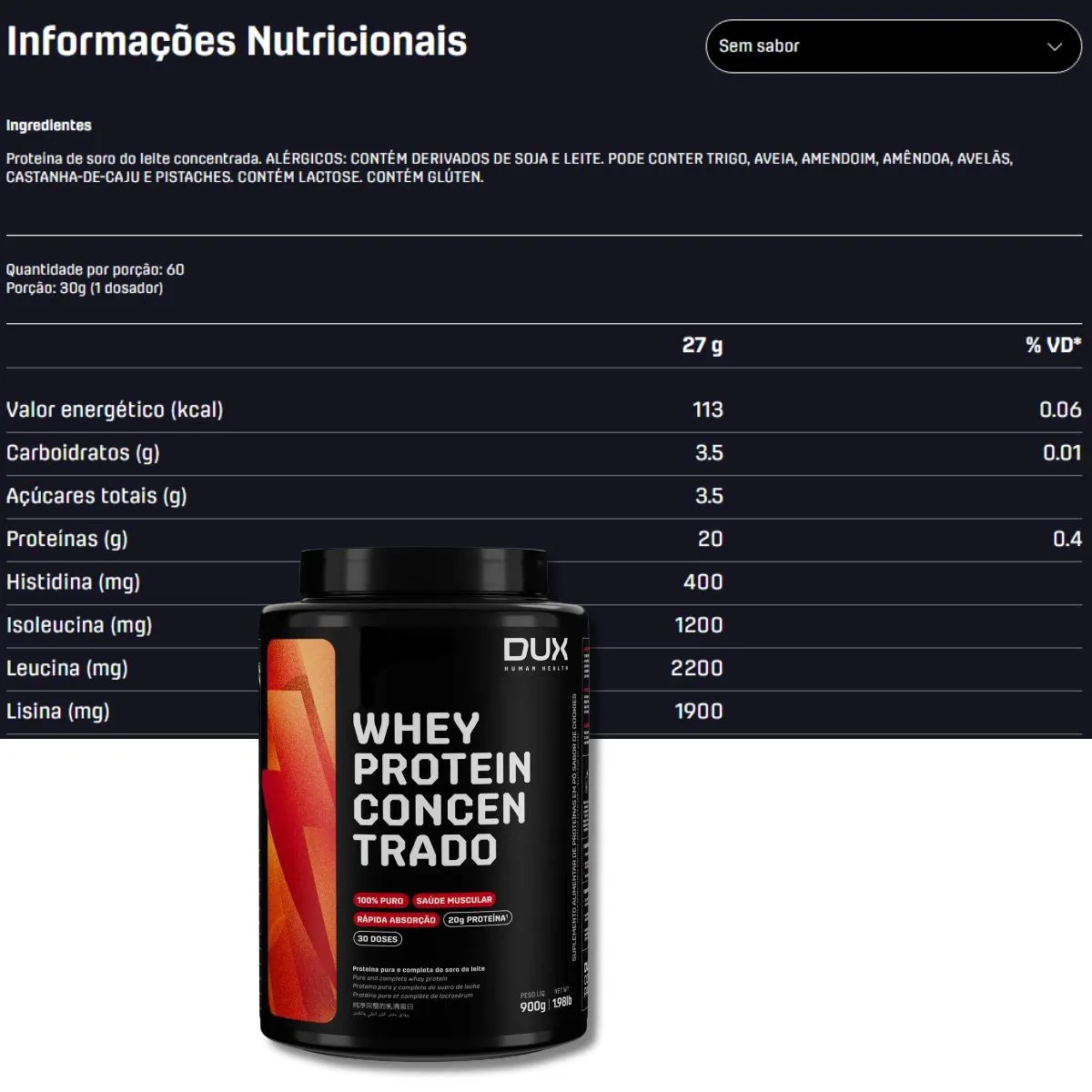 - Whey Concentrado de alto rendimento e custo-benefício, sem sabor para customização