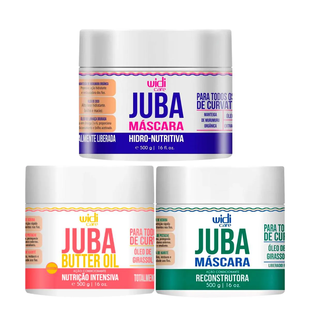 Kit Widi Care Juba Cronograma Capilar Butter Oil 500g + Máscara Reconstrutora 500g + Máscara Hidro-nutritiva 500g