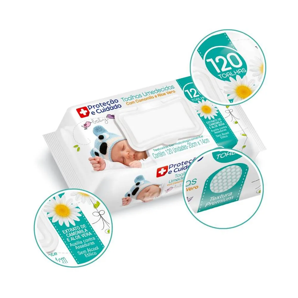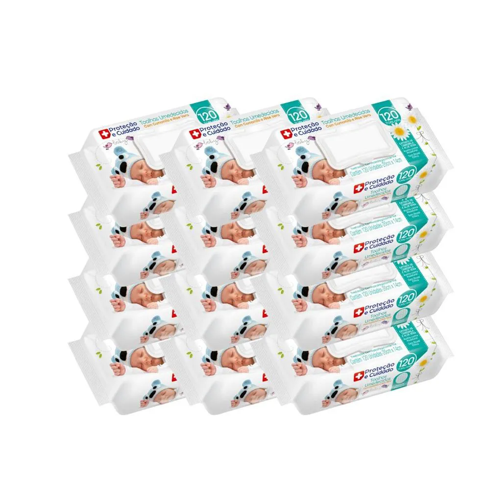 Kit12 Toalhas Umedecidas Aloe Vera Camomila Proteção Cuidado