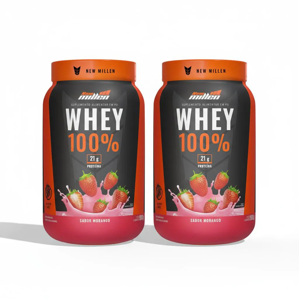 Kit2 Whey Protein 100% 21G Proteina Morango Pote 900G