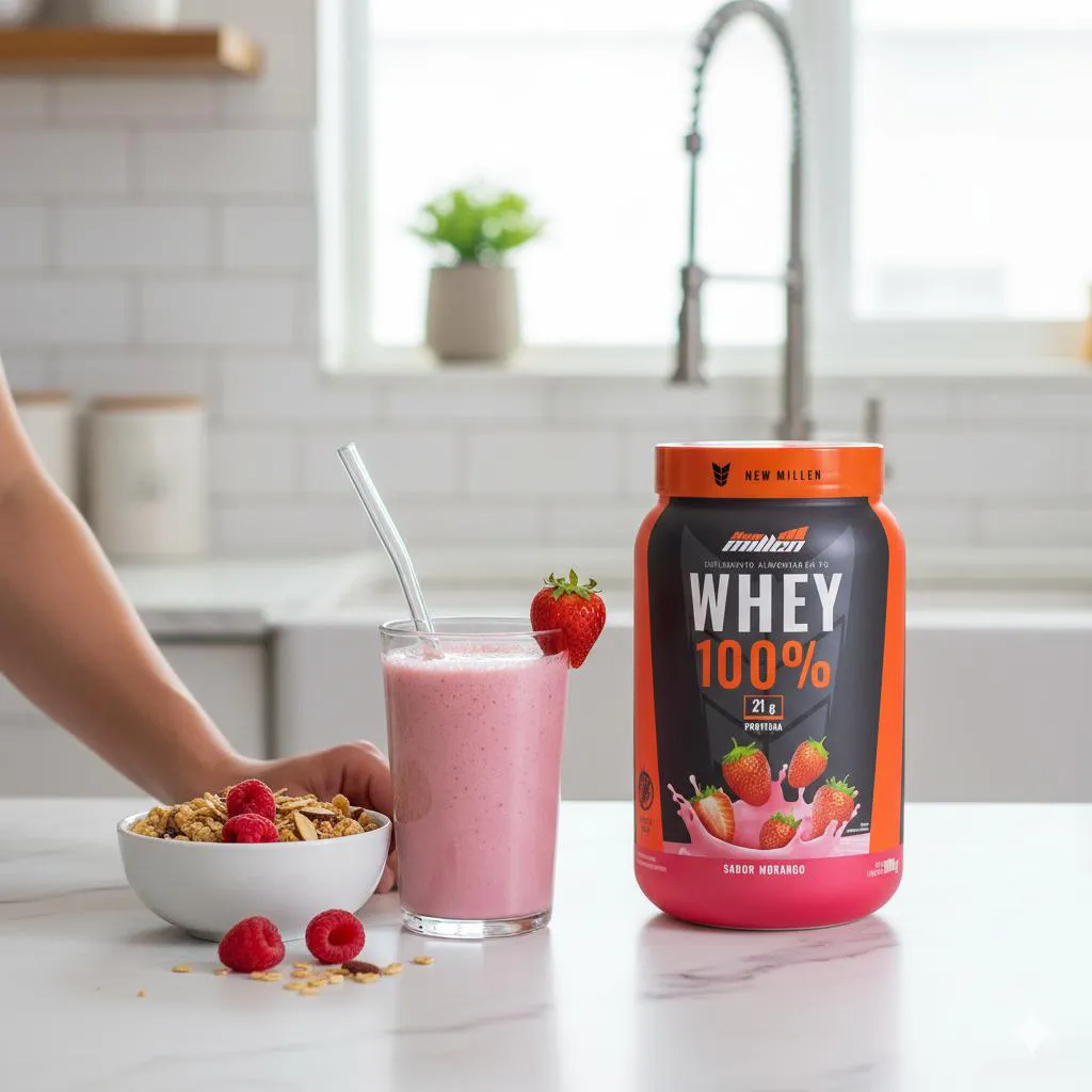 O Whey 100% Pote 900g da New Millen é um suplemento proteico desenvolvido para fornecer proteínas de alta qualidade, auxiliando no ganho de massa muscular magra e na recuperação pós-treino. Formulado com proteína concentrada do soro do leite (WPC), este produto oferece uma fonte rica em aminoácidos essenciais, incluindo BCAA e glutamina, fundamentais para o crescimento e reparo muscular. Com 21g de proteína por porção, o Whey 100% é ideal para atletas e praticantes de atividades físicas que buscam maximizar seus resultados de forma eficiente e saudável. Composição e Ingredientes - Proteína Concentrada do Soro do Leite (WPC)- Não contém glúten.