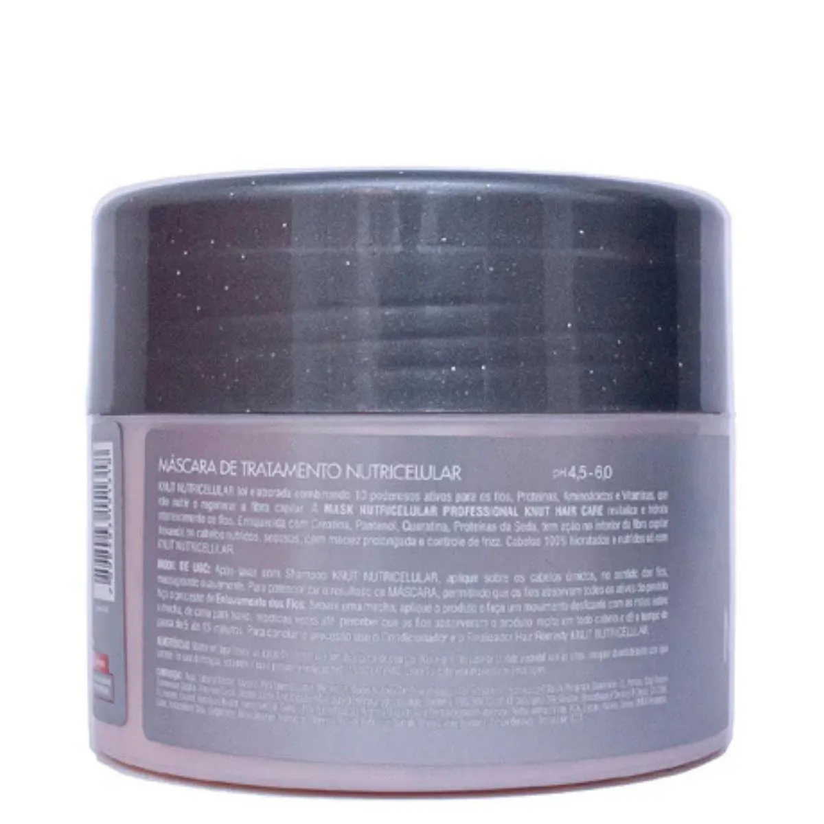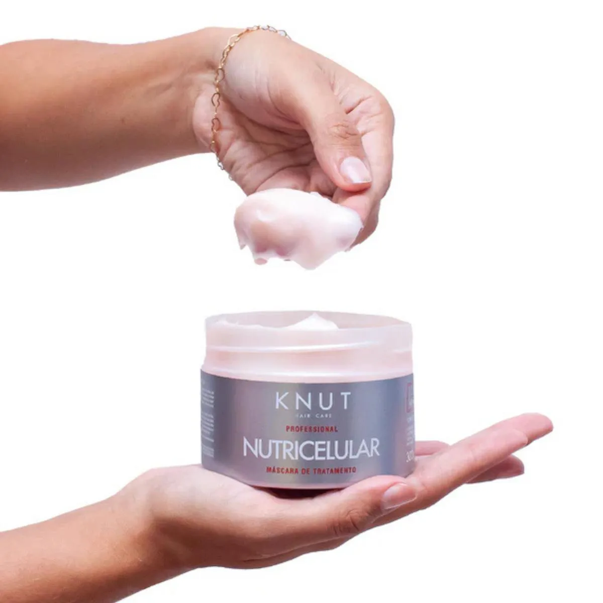 KNUT NUTRICELULAR MÁSCARA 300G KNUT NUTRICELULAR combina 10 ativos poderosos, entre proteínas, aminoácidos e vitaminas que nutrem a fibra capilar, regeneram as células e com sua textura cremosa penetram profundamente, hidratando e tratando os fios de dentro para fora. A Máscara de Tratamento Nutritiva KNUT NUTRICELULAR promove revitalização e hidratação intensiva dos fios, potencializando o brilho e a maleabilidade tornando-os macios e sedosos. Enriquecido com creatina, aminoácidos e pantenol com propriedades nutritivas, revitalizantes e restauradoras que agem na fibra capilar deixando os cabelos macios e saudáveis. Proporcionando leveza ao toque, maciez, disciplina e controle do frizz. Cabelos 100% hidratados e nutridos só com KNUT NUTRICELULAR. Especificações
