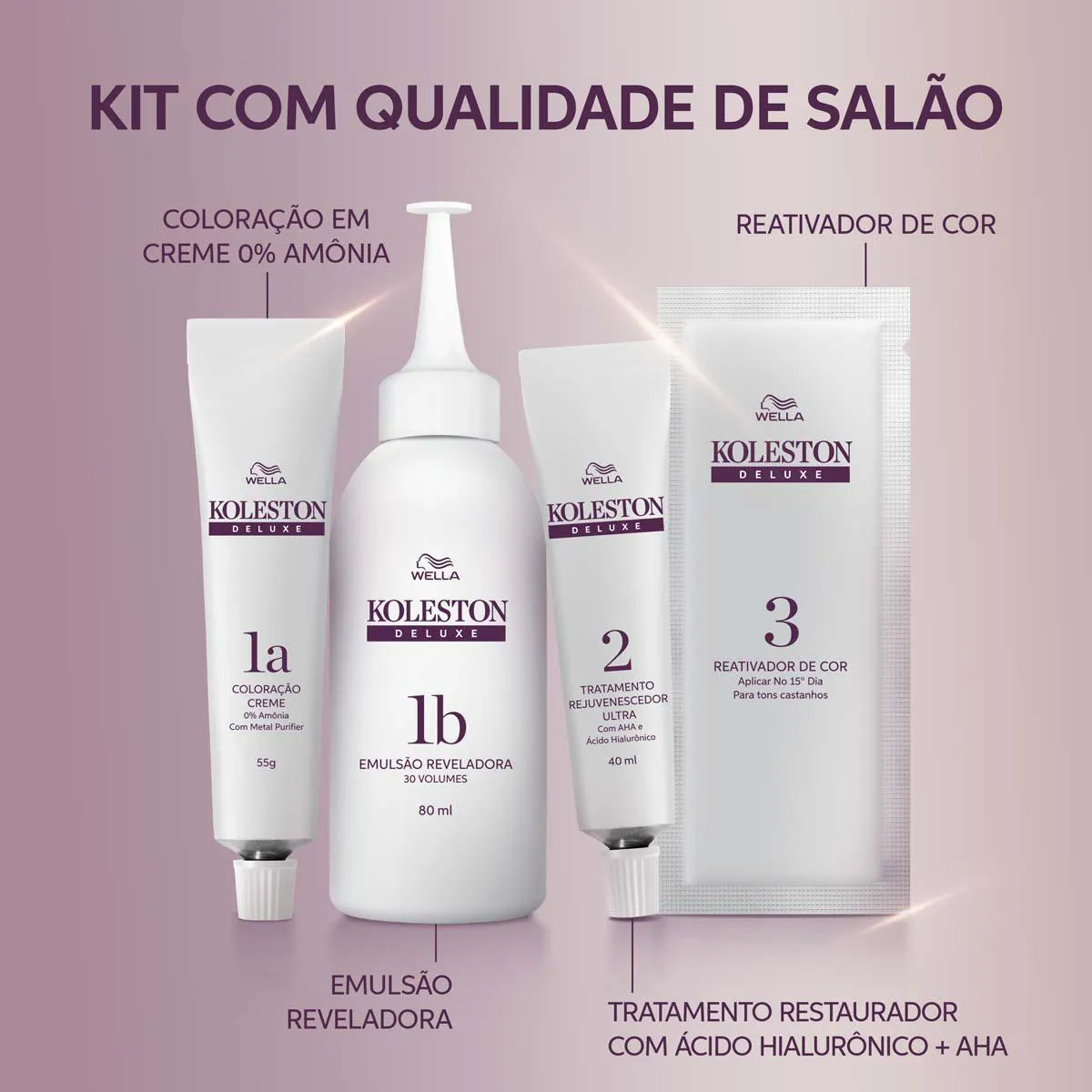 - Koleston Deluxe Louro Escuro 6.0 é uma tintura permanente sem amônia para coloração segura.