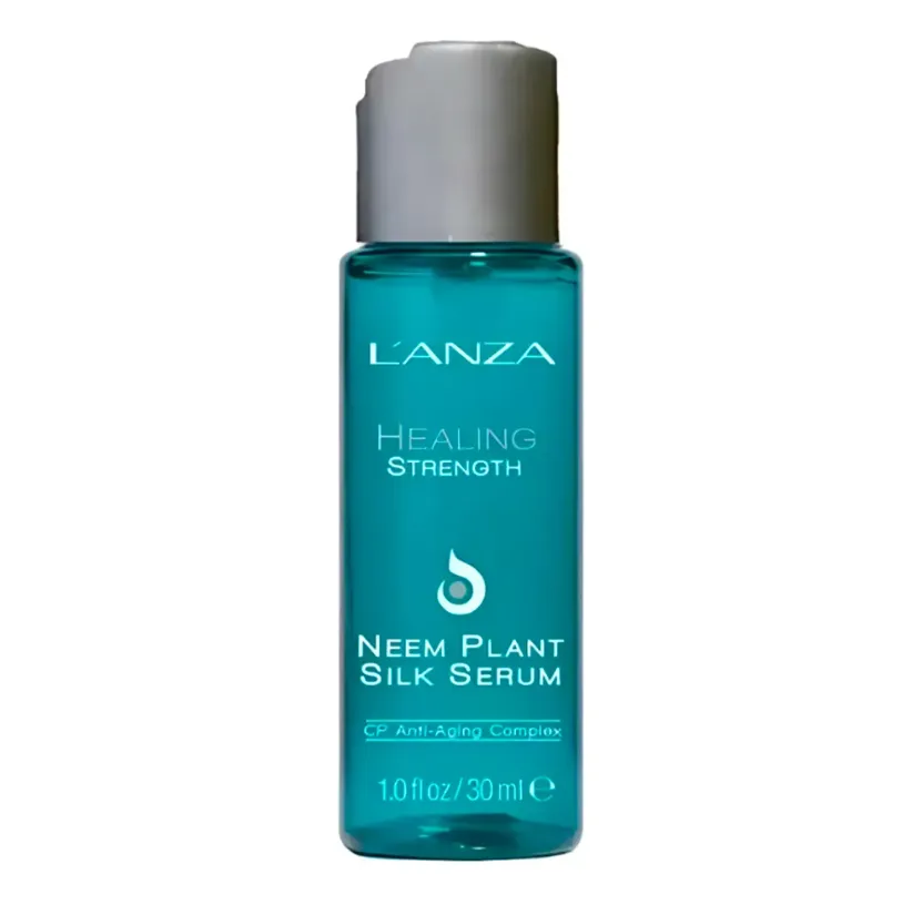 O L'ANZA Healing Strength Neem Plant Silk Serum - Sérum Capilar 30ml é um sérum capilar da linha Healing Strength da L'ANZA, marca reconhecida por produtos de cuidado capilar premium. Formulado para fortalecer e restaurar cabelos frágeis, combina extratos botânicos e peptídeos, oferecendo brilho intenso e suavidade sem pesar. Ideal para todos os tipos de cabelo, especialmente os danificados, é perfeito para cuidados diários, eventos sofisticados, outono e inverno. O frasco de 30ml, com design prático, é reciclável e ideal para uso doméstico ou viagens.