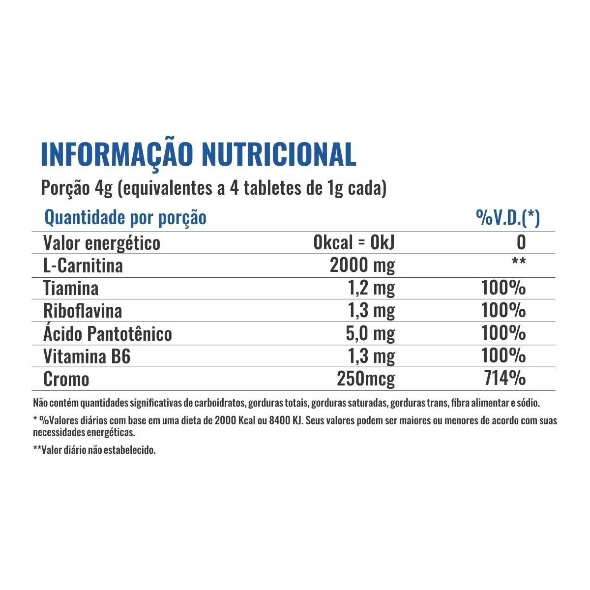 L CARNITINE 2000 CROMO 60 TABLETES SEM Sabor