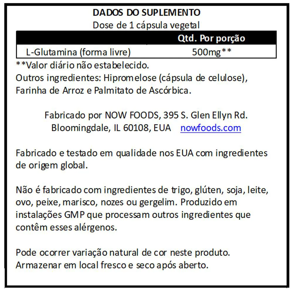 L-Glutamina 500mg Now Foods L-Glutamine 120 Cápsulas Vegetarianas Performance Aumentada Rotina Esportiva - No Brasil