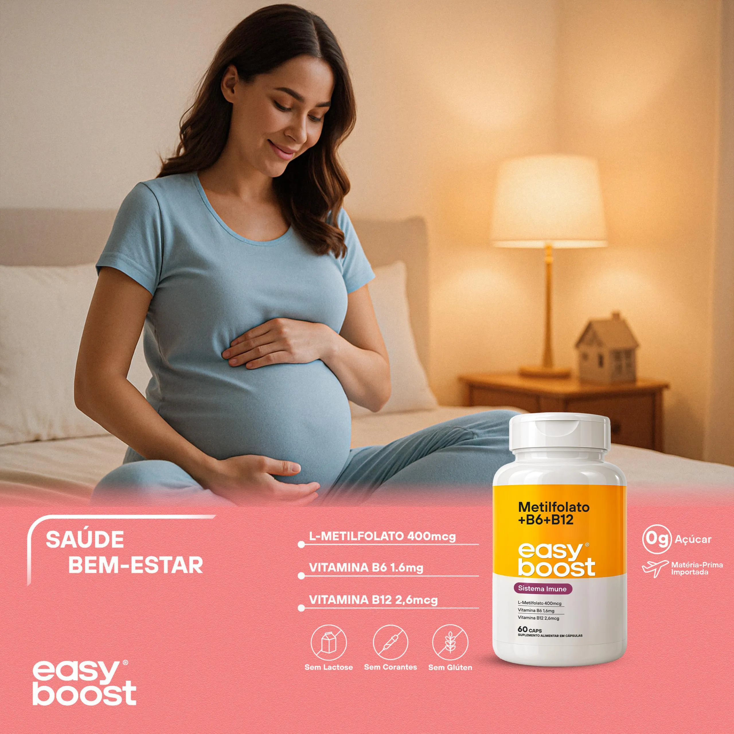 L - Metilfolato de Cálcio B6 B12 Easyboost Ácido Fólico 60 cápsulas