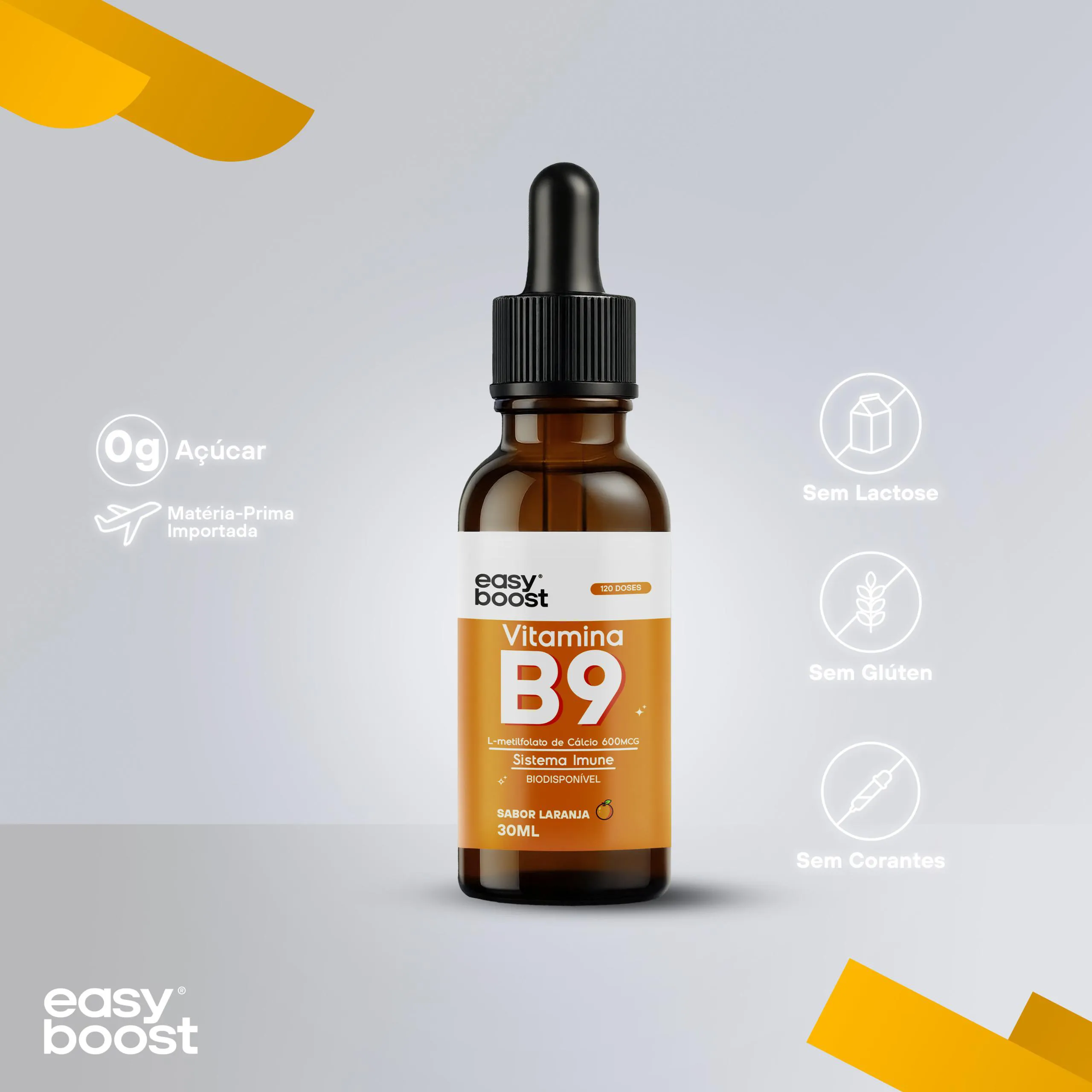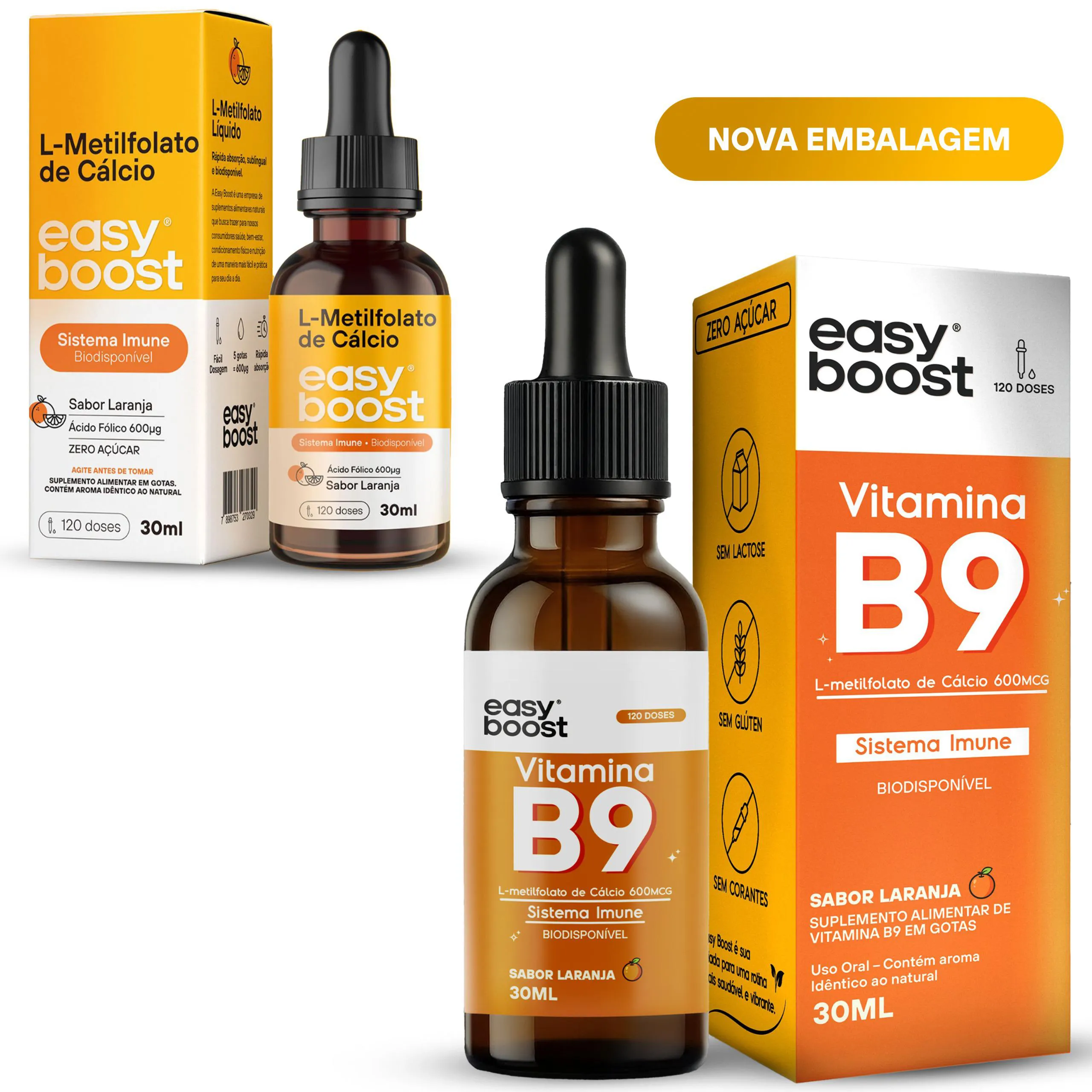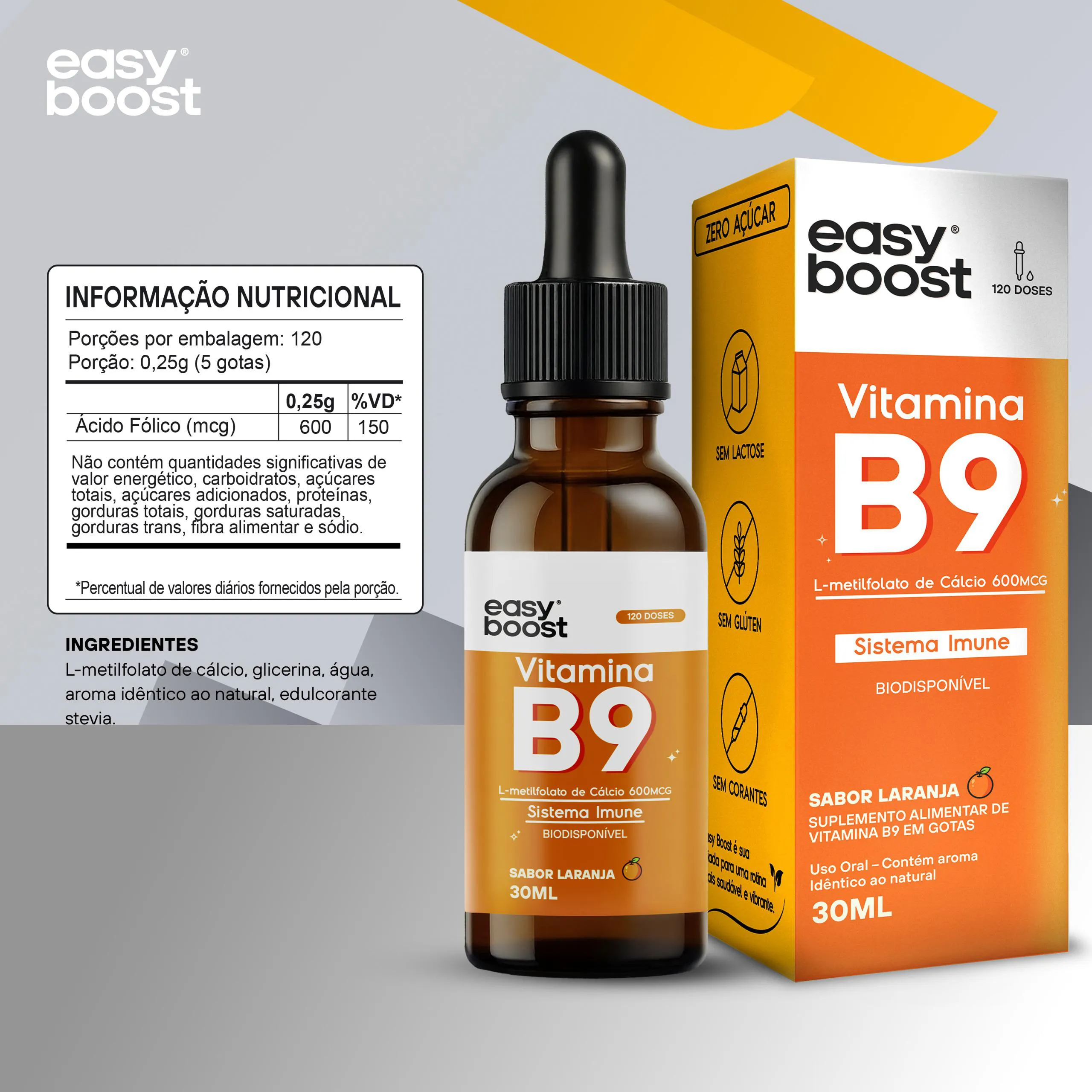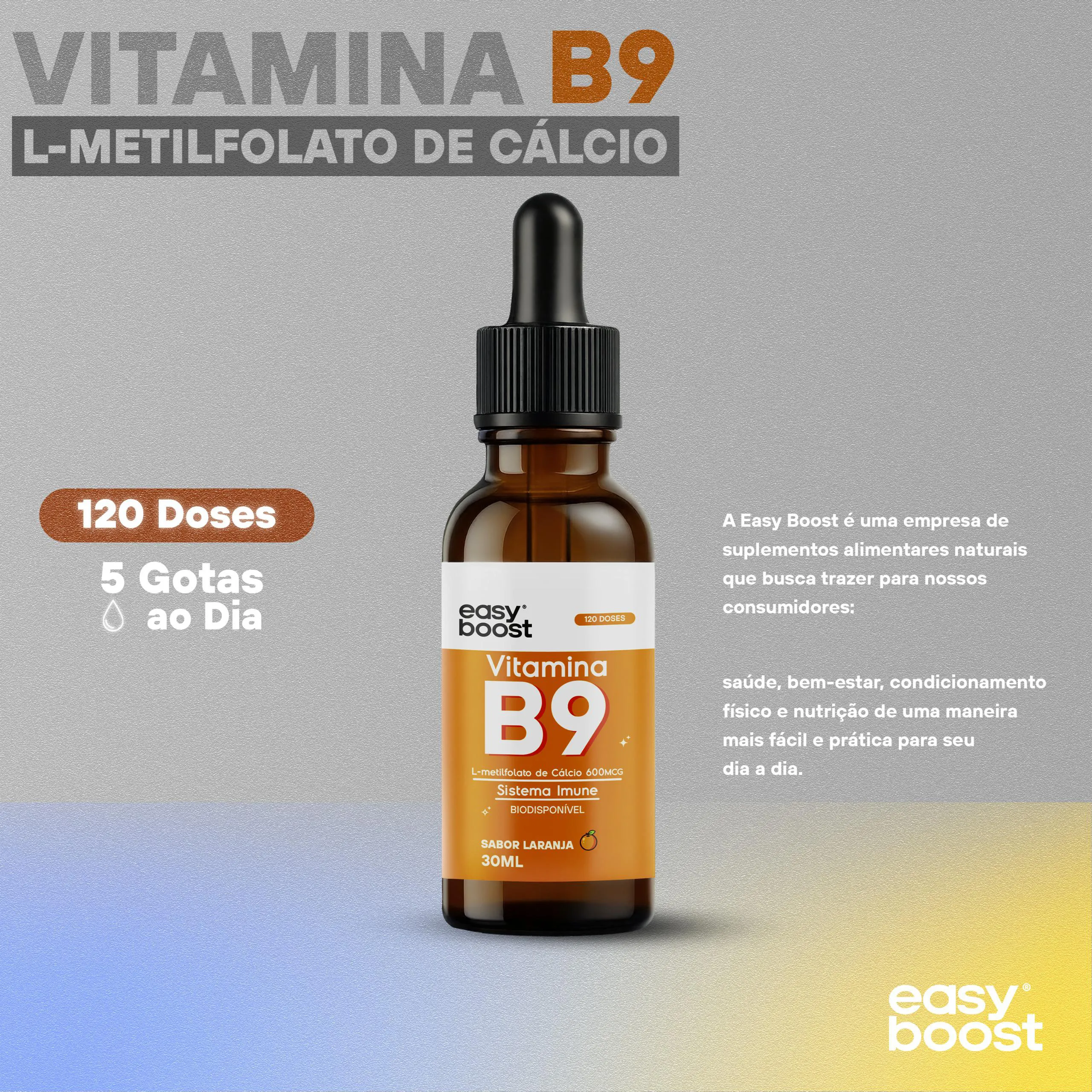 Neste anúncio você irá adquirir 1 frasco de L-Metilfolato de Cálcio Easy Boost com 30ml e uma validade longa, de no minímo 12 meses. SABOR LARANJA.