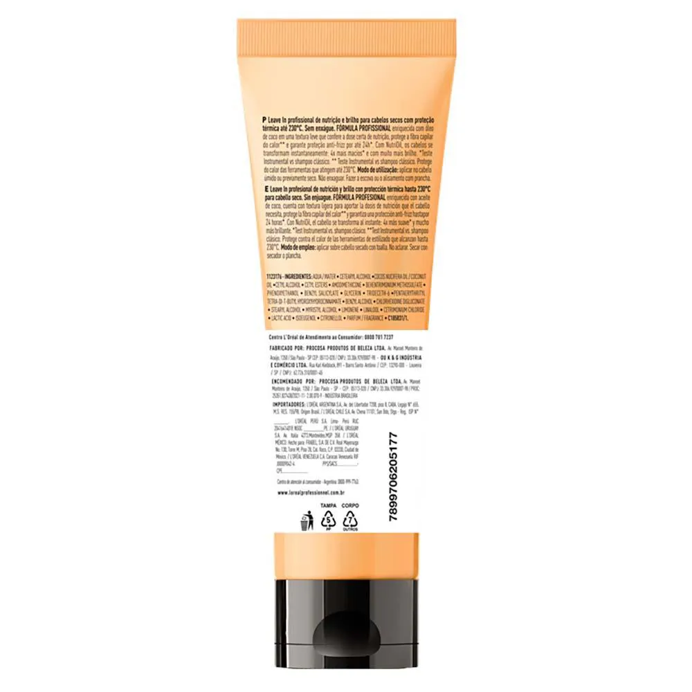 O Leave In NutriOil de L'Oréal Professionnel é a solução ideal para cabelos mais nutridos e com muito mais brilho. Ideal para complementar sua etapa de nutrição no cronograma capilar. Sua fórmula profissional é enriquecida com 1,5% de óleo de coco em uma textura leve que confere a dose certa de nutrição. Com proteção térmica até 230°, protege a fibra capilar
