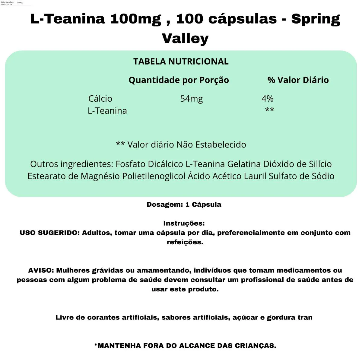 L-Teanina 100mg , 100 cápsulas - Spring Valley