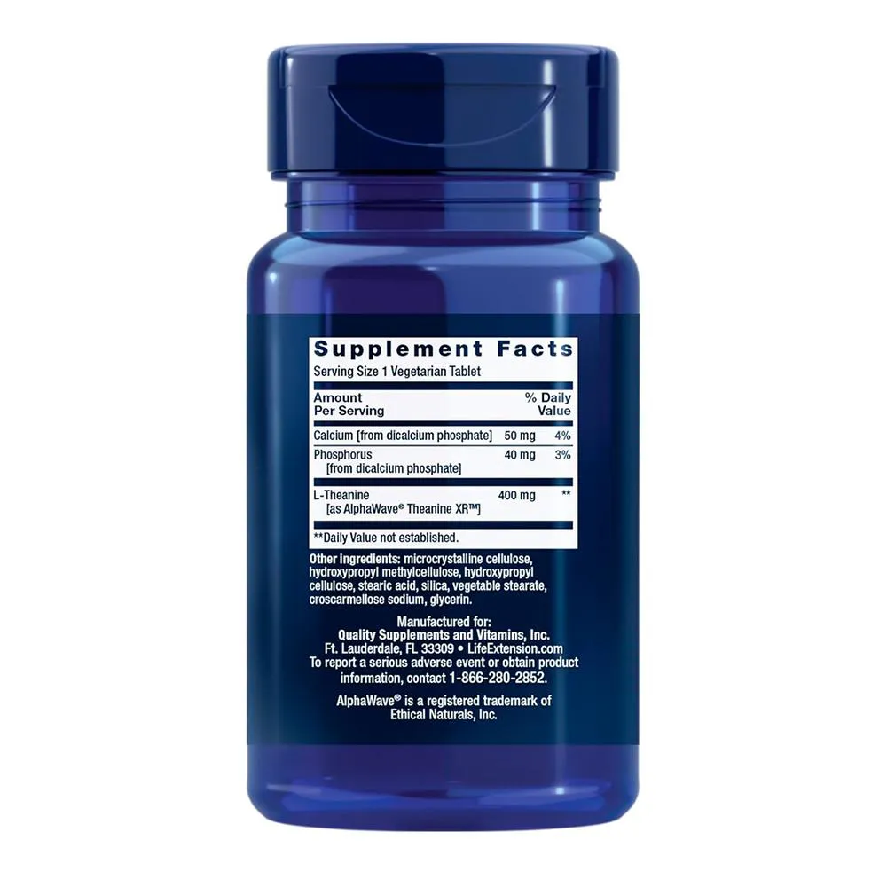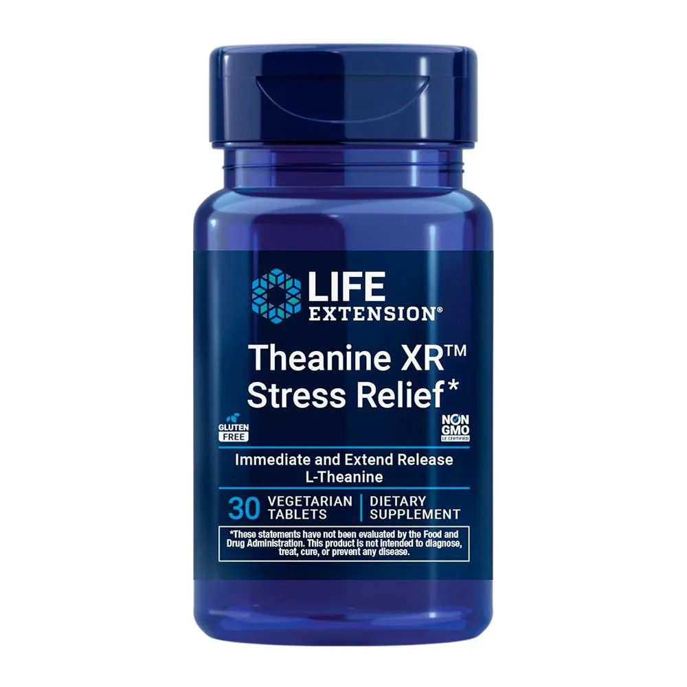 Life Extension Theanine XR 30 Tablets Suplemento para Alívio do Estresse e Relaxamento, Fórmula de Liberação Prolongada