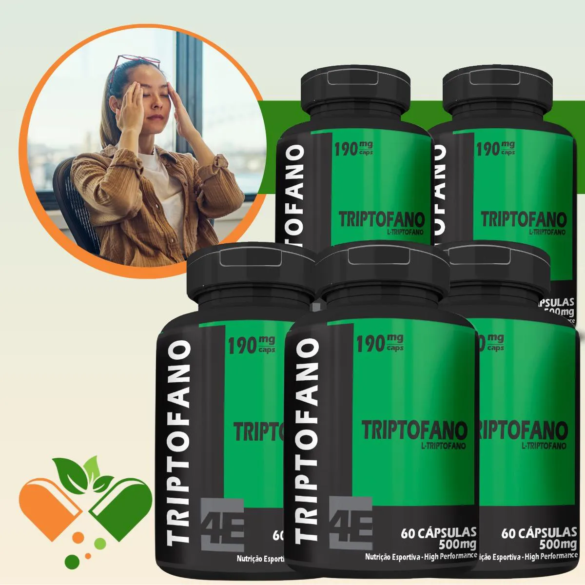 L-Triptofano Kit com 5 Potes com Total de 300 Capsulas