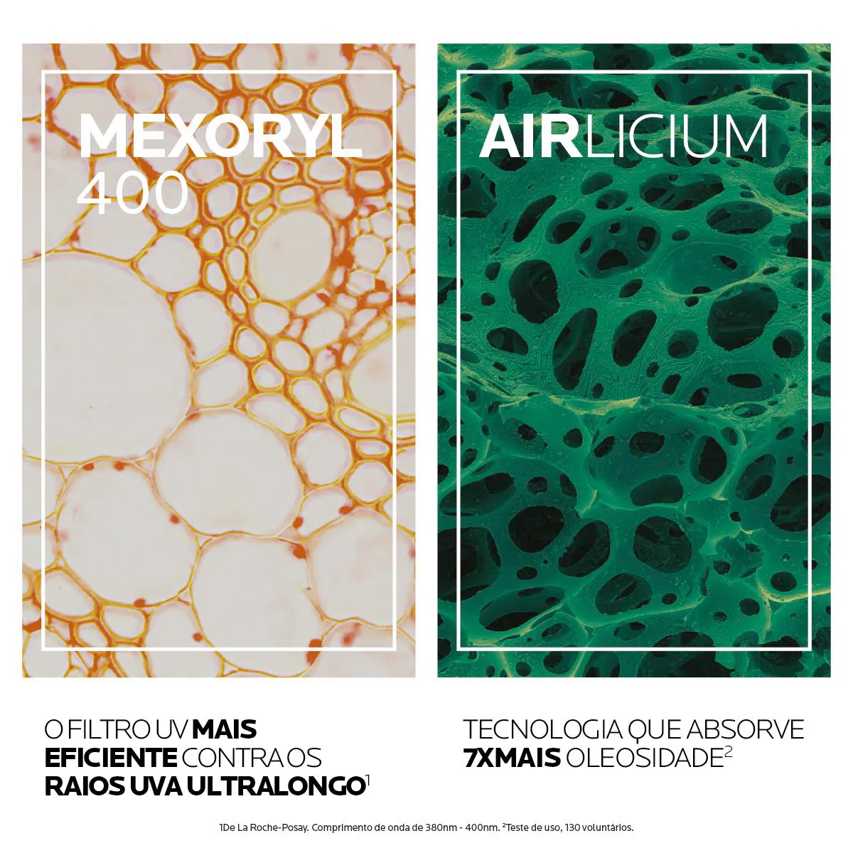 - Combina as tecnologias Mexoryl 400 e Airlicium para controlar a oleosidade.