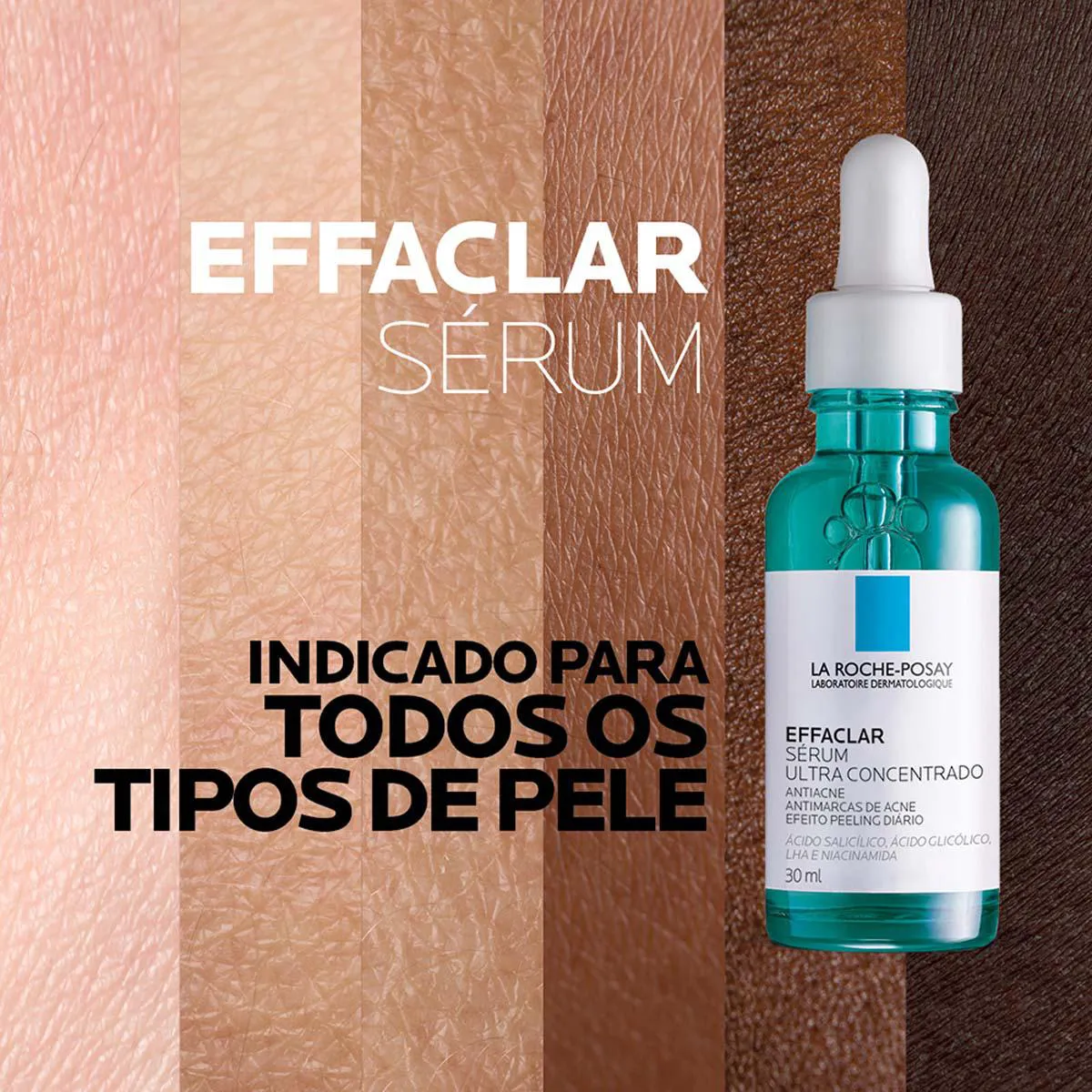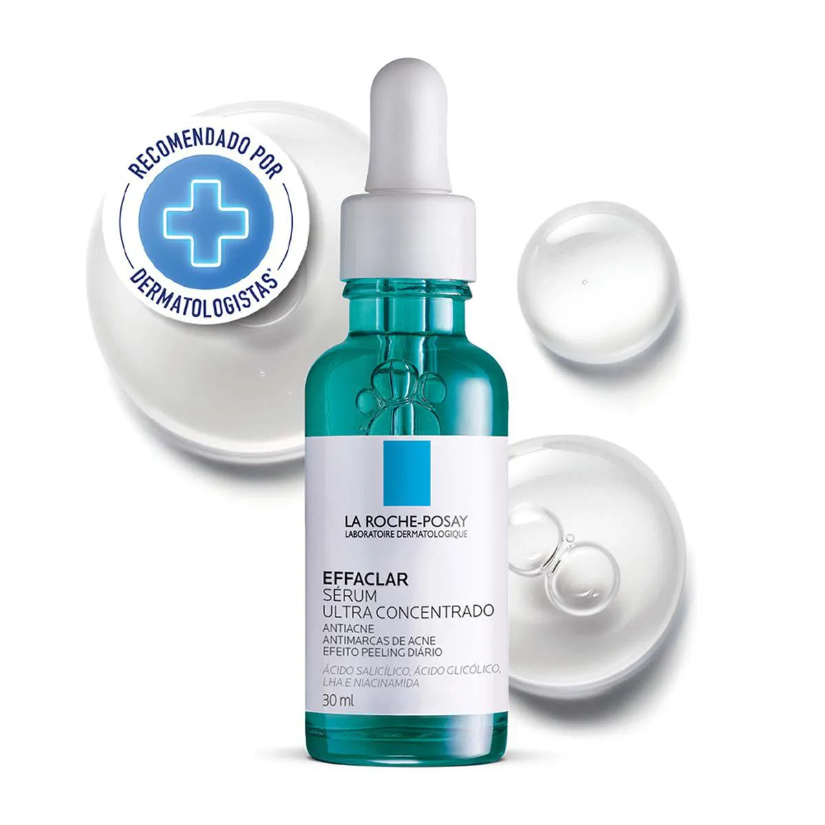 O Effaclar Sérum Ultra Concentrado é um cuidado cosmético antiacne desenvolvido para tratar e prevenir acne, marcas de acne e poros visíveis. É um produto dermatologicamente testado com textura leve e absorção rápida, formulado com um complexo tri-ácido (Ácido Salicílico, Ácido Glicólico e LHA) e Niacinamida.