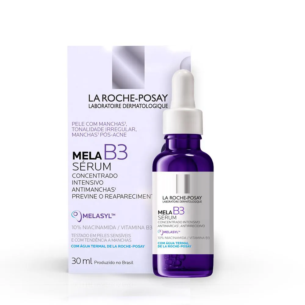 Mela B3 é o novo sérum concentrado antimanchas da La Roche-Posay. Sua fórmula é enriquecida com Melasyl™, exclusivo ativo da marca, e com 10% de Niacinamida.