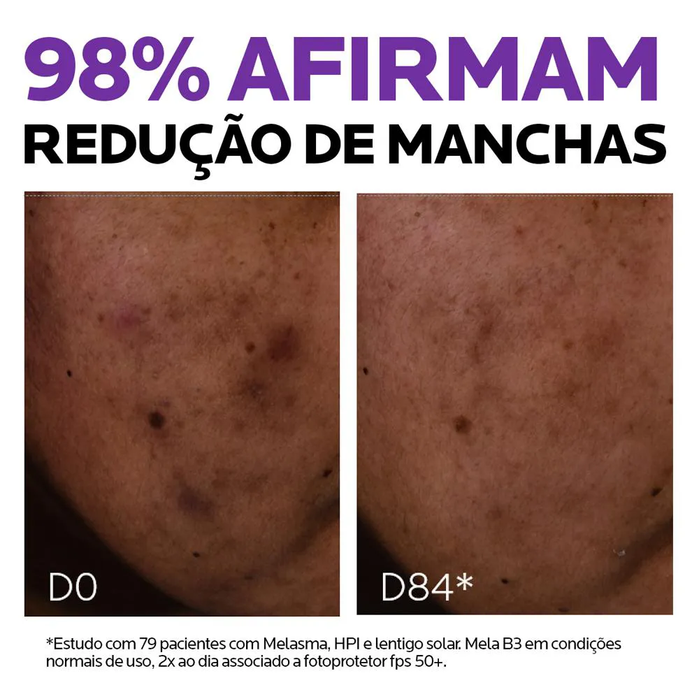 Indicado para todos os tons e tipos de pele, inclusive as oleosas, o sérum La Roche-Posay Mela B3 intercepta o excesso de melanina antes que cause diferenças de tonalidade na pele, reduzindo visivelmente manchas da pele com resultados visíveis em uma semana.