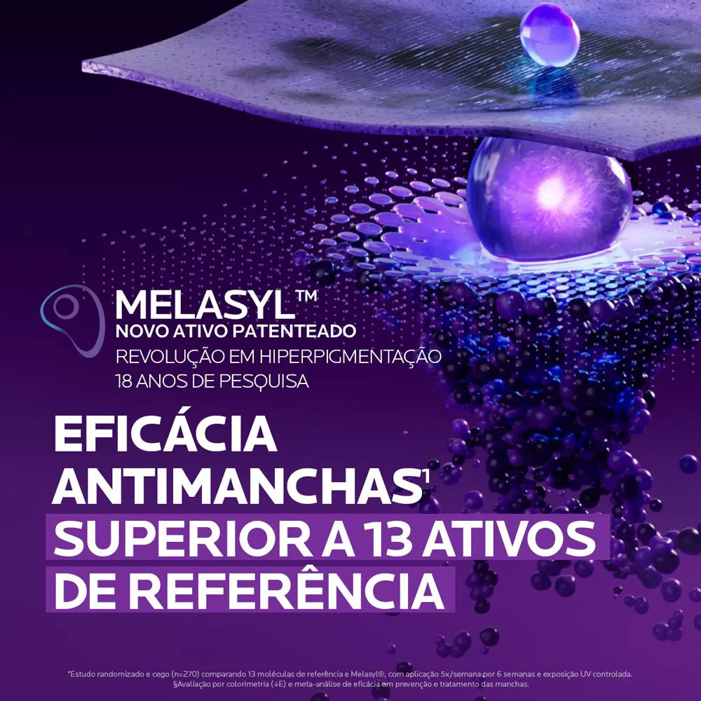 Com eficácia clínica comprovada, ele reduz e previne o reaparecimento, atuando também em manchas solares, manchas pós acne e manchas persistentes.