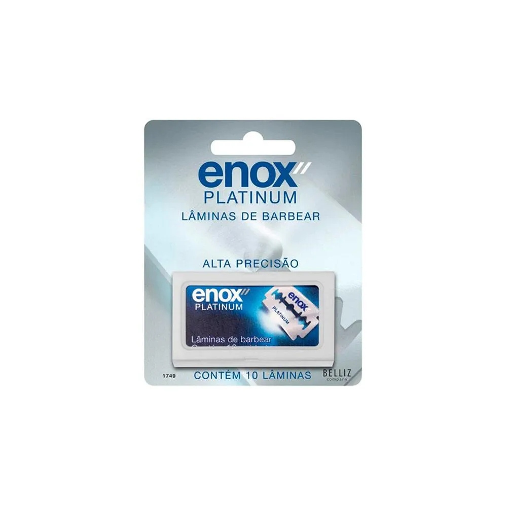 Lâmina de Barbear em Blister Enox Prata, possui fio revestido de platina para maior resistência e lâmina em aço inoxidável.