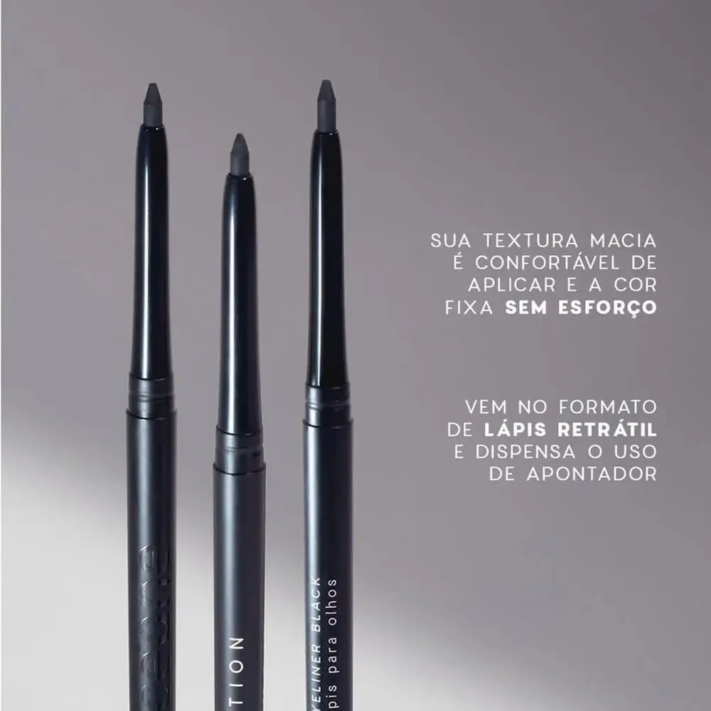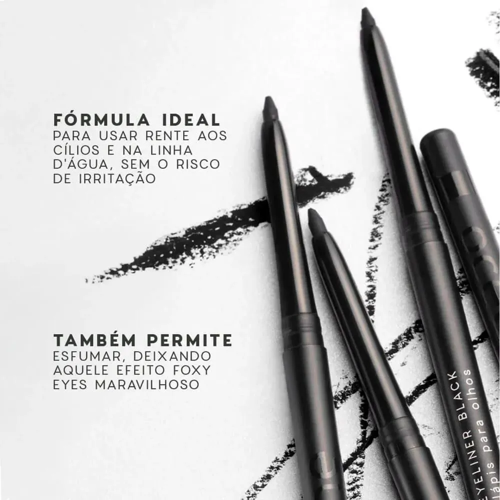 O Lápis para Olhos Preto é aquele item essencial no nécessaire de quem ama uma maquiagem marcante e versátil. Com cor preta intensa, ele transforma uma make simples em uma produção poderosa, valorizando o olhar com precisão e impacto. Sua fórmula vegana e cruelty free respeita você e os animais, enquanto sua textura macia permite um traço preciso, sem machucar a pele. Ideal para delineados definidos, efeitos esfumados e até aplicação na linha d’água.