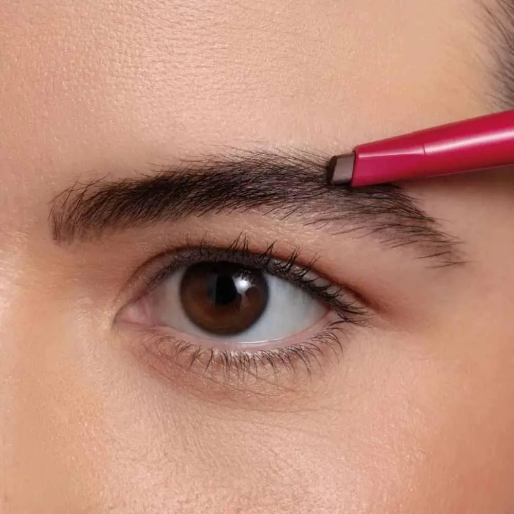 Perfeita para quem busca um visual impecável, esta lapiseira oferece a solução completa em um único produto, com ponta triangular para desenho preciso, esponja cushion para preenchimento total e escovinha com gel fixador para manter todos os fios no lugar.