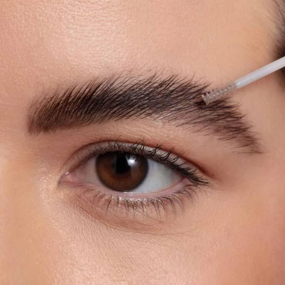 3. Por fim, use a escovinha com gel fixador para pentear e manter todos os fios no lugar, assegurando uma sobrancelha impecável durante todo o dia.