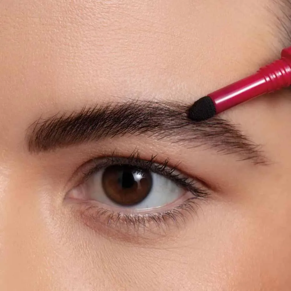 - Versatilidade com três funcionalidades em um único produto: ponta triangular para desenho, esponja cushion para preenchimento e escovinha com gel fixador;