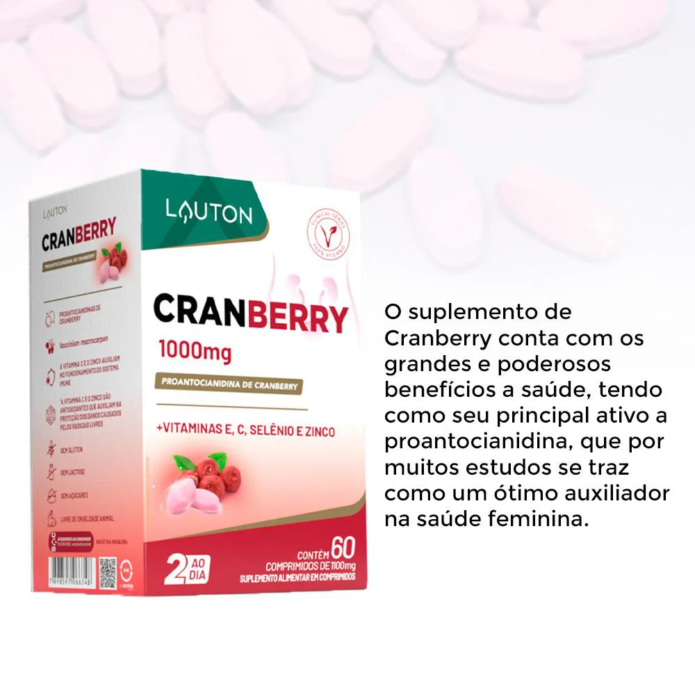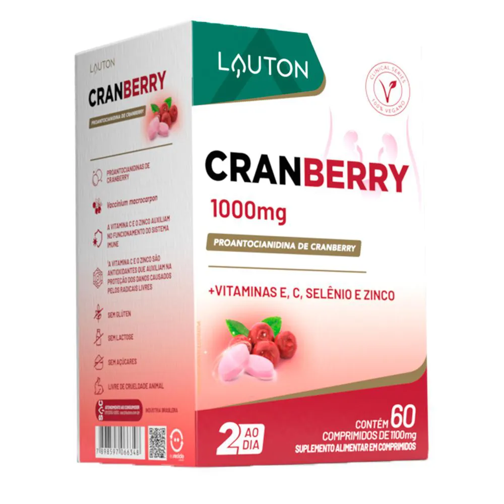Cranberry 1000mg Lauton + Vit. C/E, Zinco Selênio 60Comp