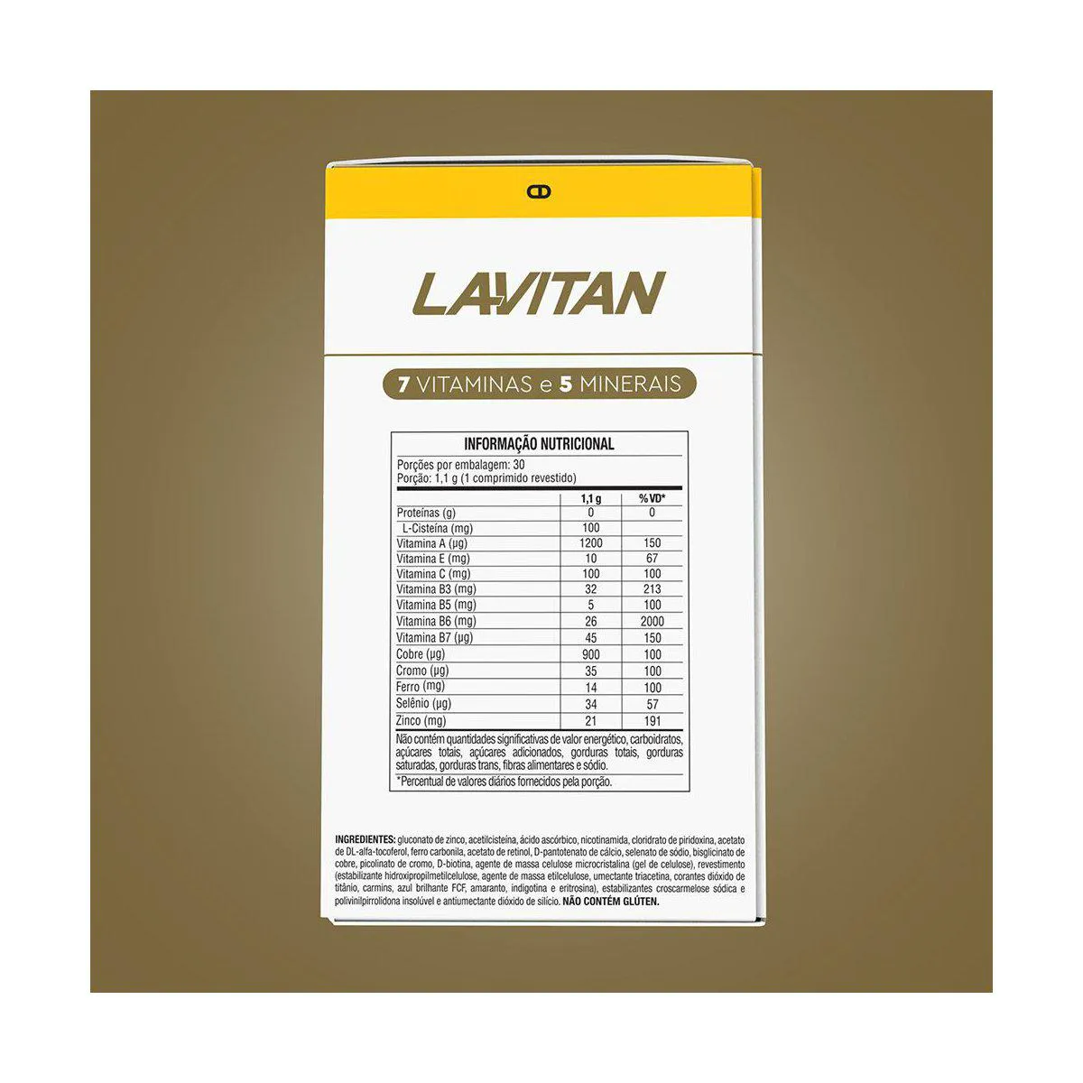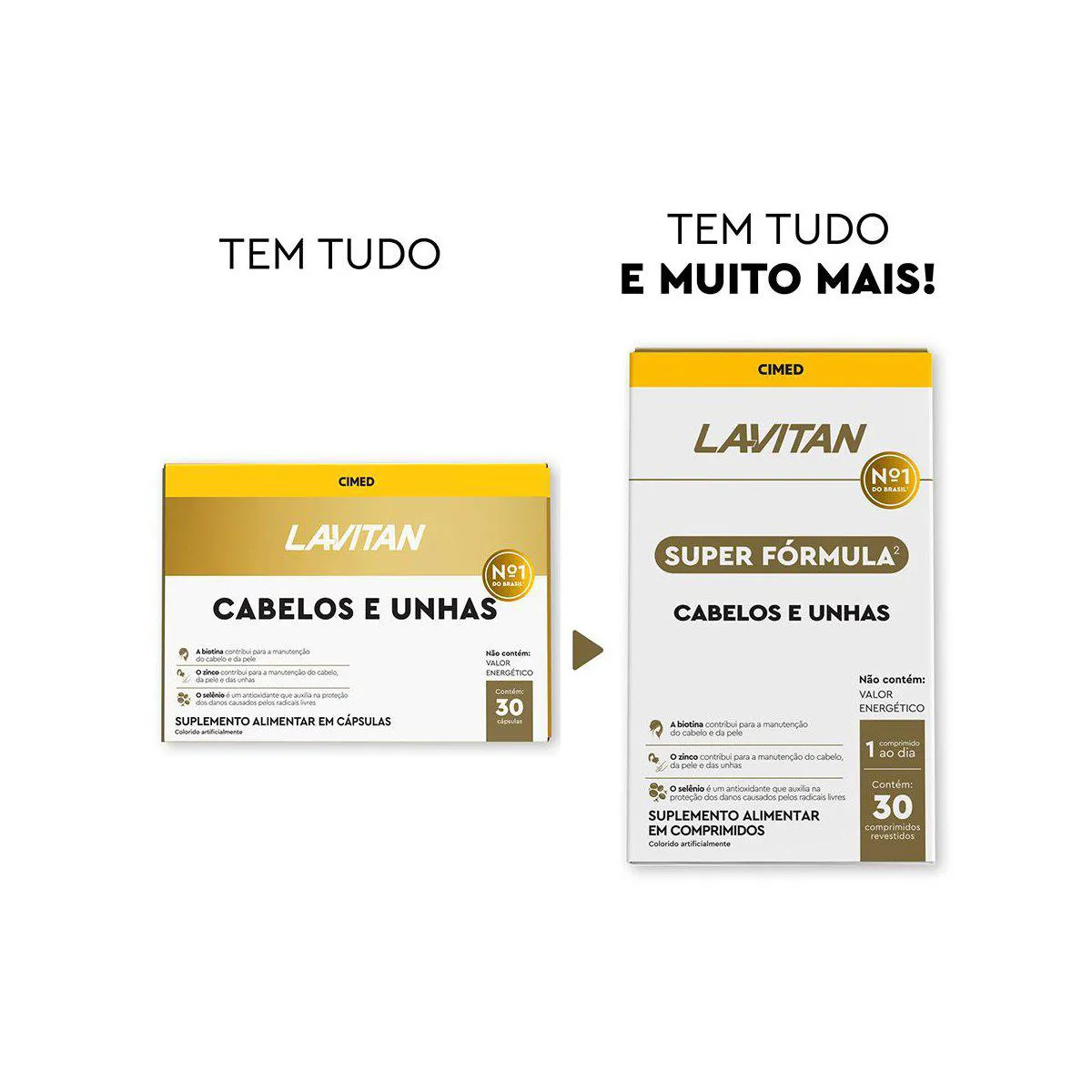 Lavitan Super Fórmula Cabelos e Unhas é um suplemento alimentar em comprimidos formulado com biotina, Zinco, Selênio, Cisteína, vitaminas e minerais.