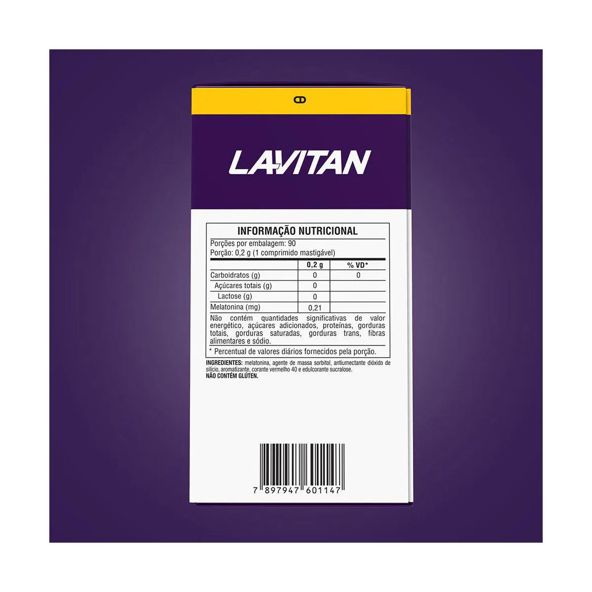 Lavitan Melatonina é um suplemento alimentar com 0,20mg de melatonina. Comprimidos mastigáveis com rápida absorção.