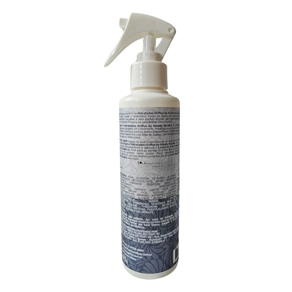 Finalidade: O Leave-In Hidratados Griffus by Gizelly Bicalho é o finalizador sem enxágue que garante um tratamento imediato para os seus fios, que vão ficar macios, bonitos e com um brilho inacreditável. Isso porque ele combina a ação ácido hialurônico e do óleo de jojoba, que fortalecem e restauram os cabelos para um efeito Uau!