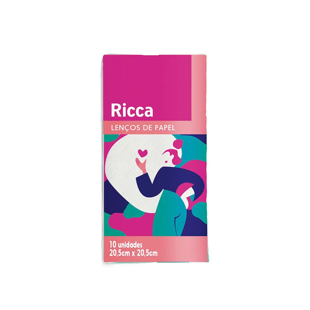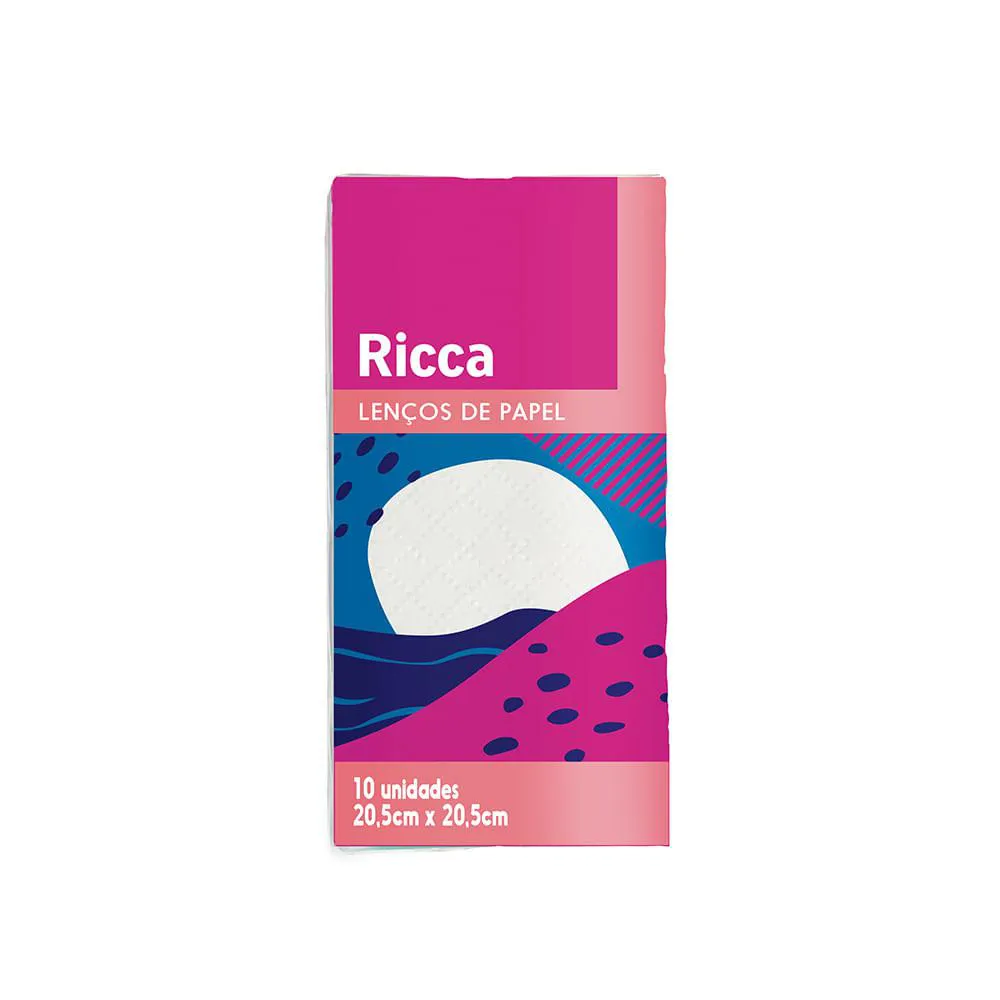 lenços de papel Ricca para limpeza geral. São os parceiros ideais para não deixar que imprevistos atrapalhem seu dia ou estraguem sua festa! Características: Medidas: 20,5x20,5cm; Contém 10 unidades; Folhas triplas; Dermatologicamente testado.