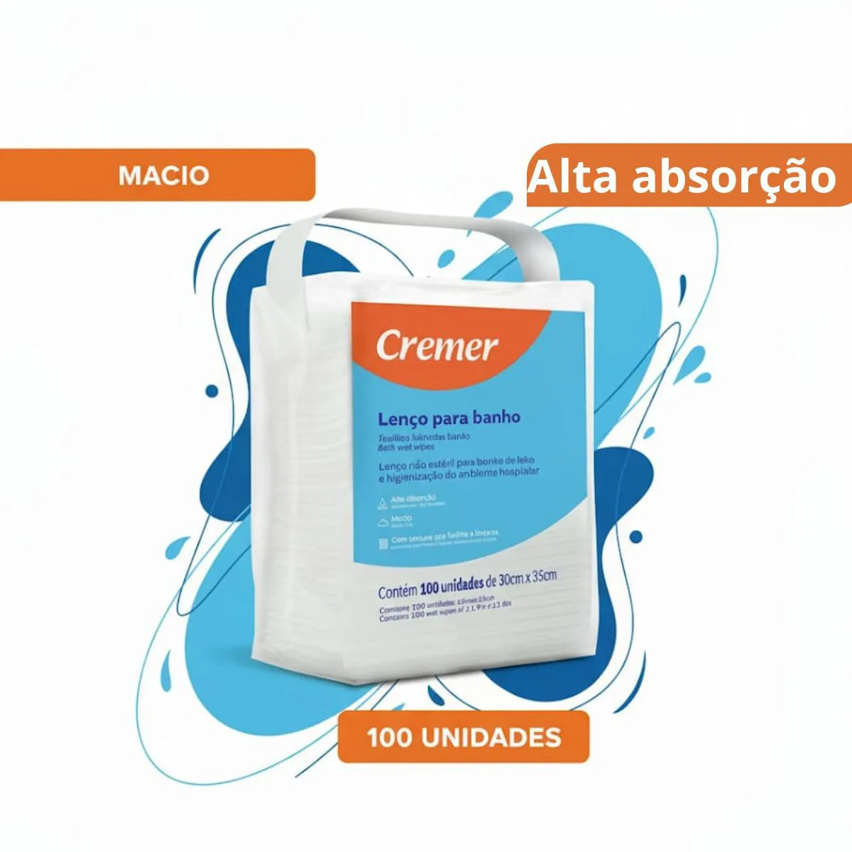 Lenço Pra Banho Leito Acamados 30X 35 Cm 100 Unidades Cremer