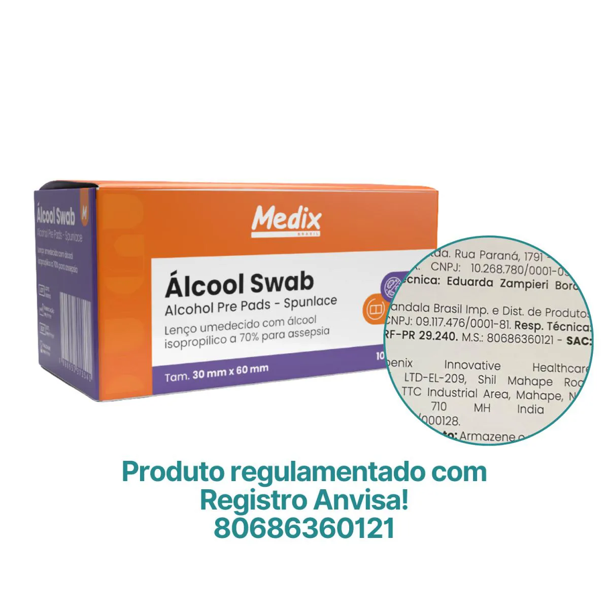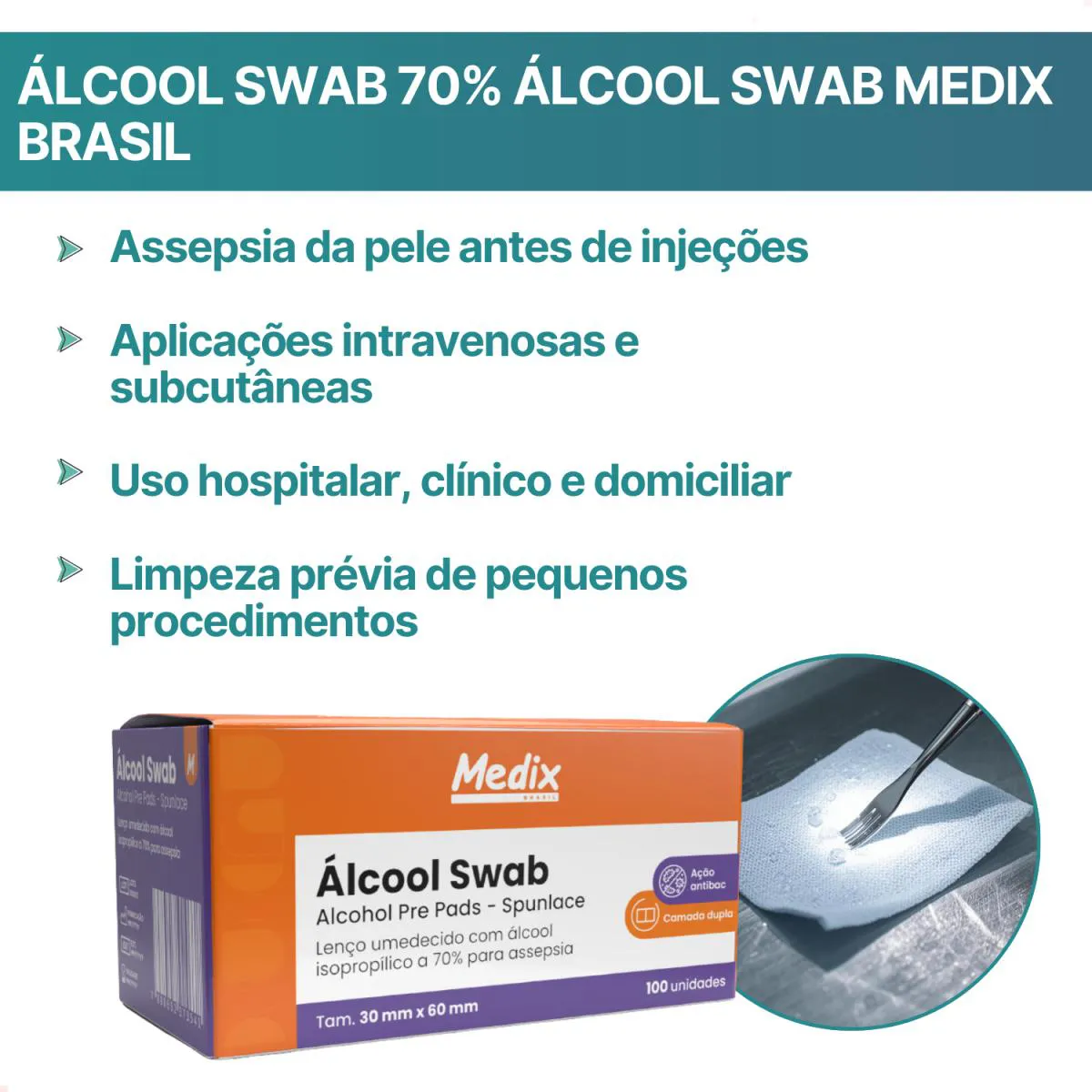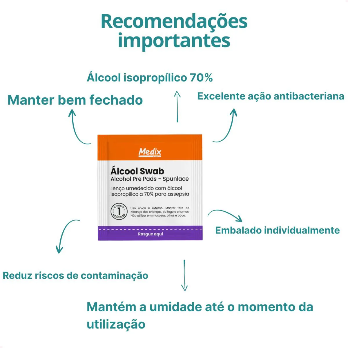 Álcool Swab 70% Álcool Swab Medix Brasil