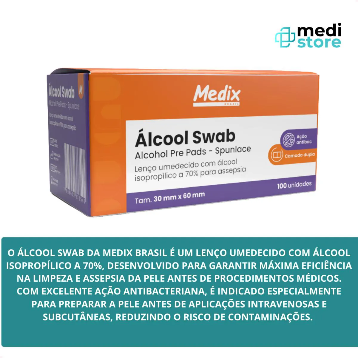 O Álcool Swab da Medix Brasil é um lenço umedecido com álcool isopropílico a 70%, desenvolvido para garantir máxima eficiência na limpeza e assepsia da pele antes de procedimentos médicos.