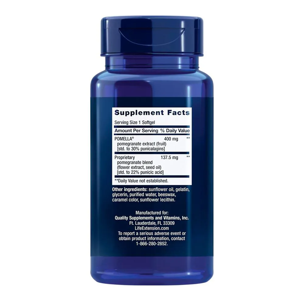Life Extension Pomegranate Complete 30 Softgels - Suplemento antioxidante de Romã para Apoio Nutricional Diário e Bem-Estar Geral