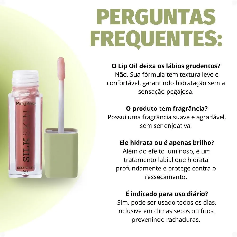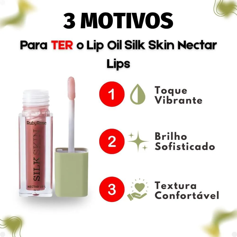 Descubra o Lip Oil Ruby Rose Silk Skin Nectar Lips Espresso Luxe Hb-l6504-4, um tratamento labial essencial que une hidratação profunda a um brilho sutil e elegante. Formulado pela renomada RUBY ROSE, este Lip Oil na cor Espresso Luxe é a solução ideal para quem busca lábios nutridos, macios e com um toque de cor vibrante. Sua fórmula exclusiva proporciona uma experiência de cuidado labial superior, perfeita para o uso diário, garantindo lábios irresistíveis.Com uma textura leve e não pegajosa, o Lip Oil Nectar Lips Silk Skin é rapidamente absorvido, oferecendo conforto imediato e duradouro. Ele atende ao desejo de lábios bem cuidados e realçados, tornando-se um item indispensável em sua rotina de beleza. Ideal para quem busca praticidade e beleza em um só produto, este lip oil oferece uma solução completa para lábios deslumbrantes.Benefícios Principais
